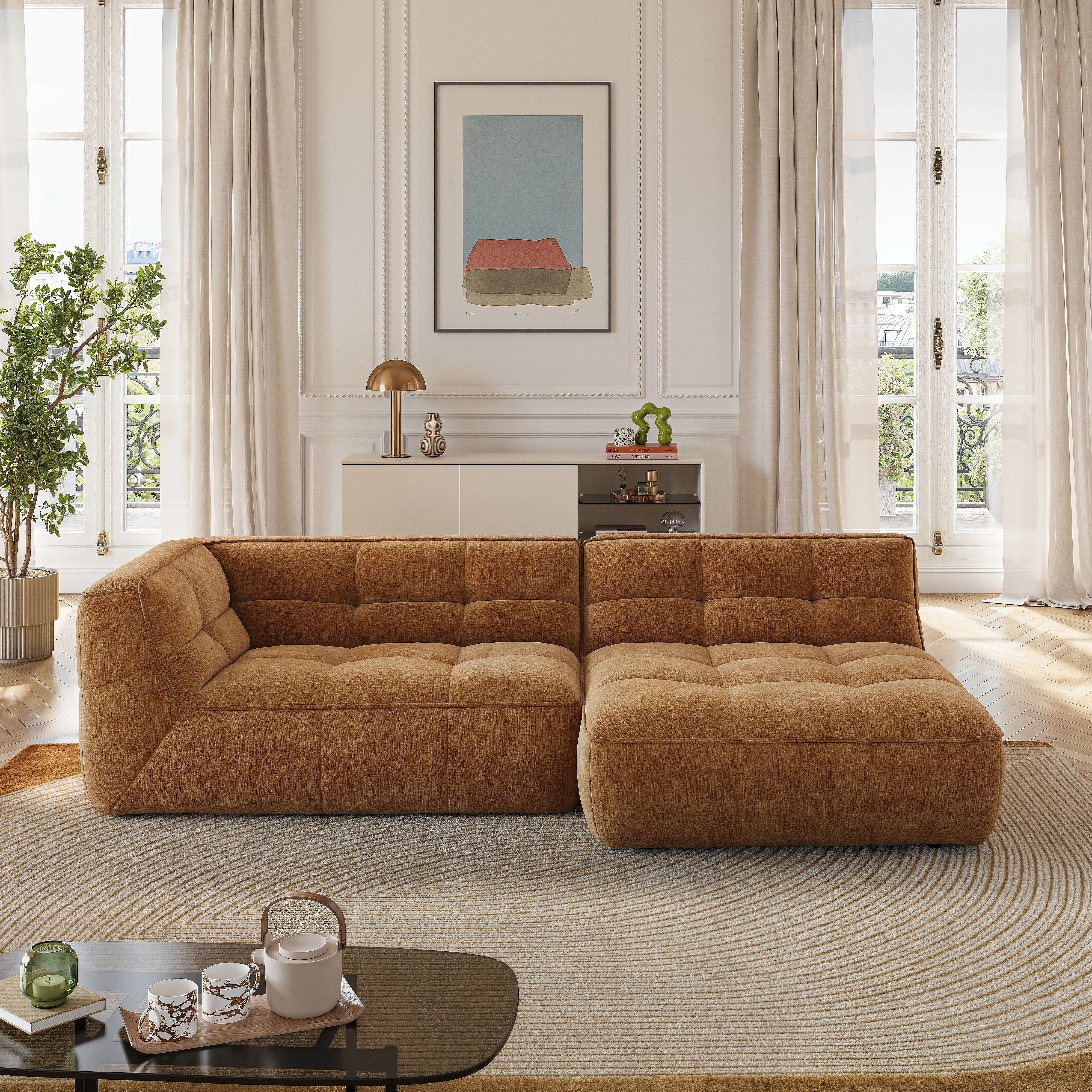 Orieto è un divano angolare dalle linee generose e dalla meridiana accogliente. Progettato per coniugare comfort e stile, diventa un elemento forte negli interni contemporanei.