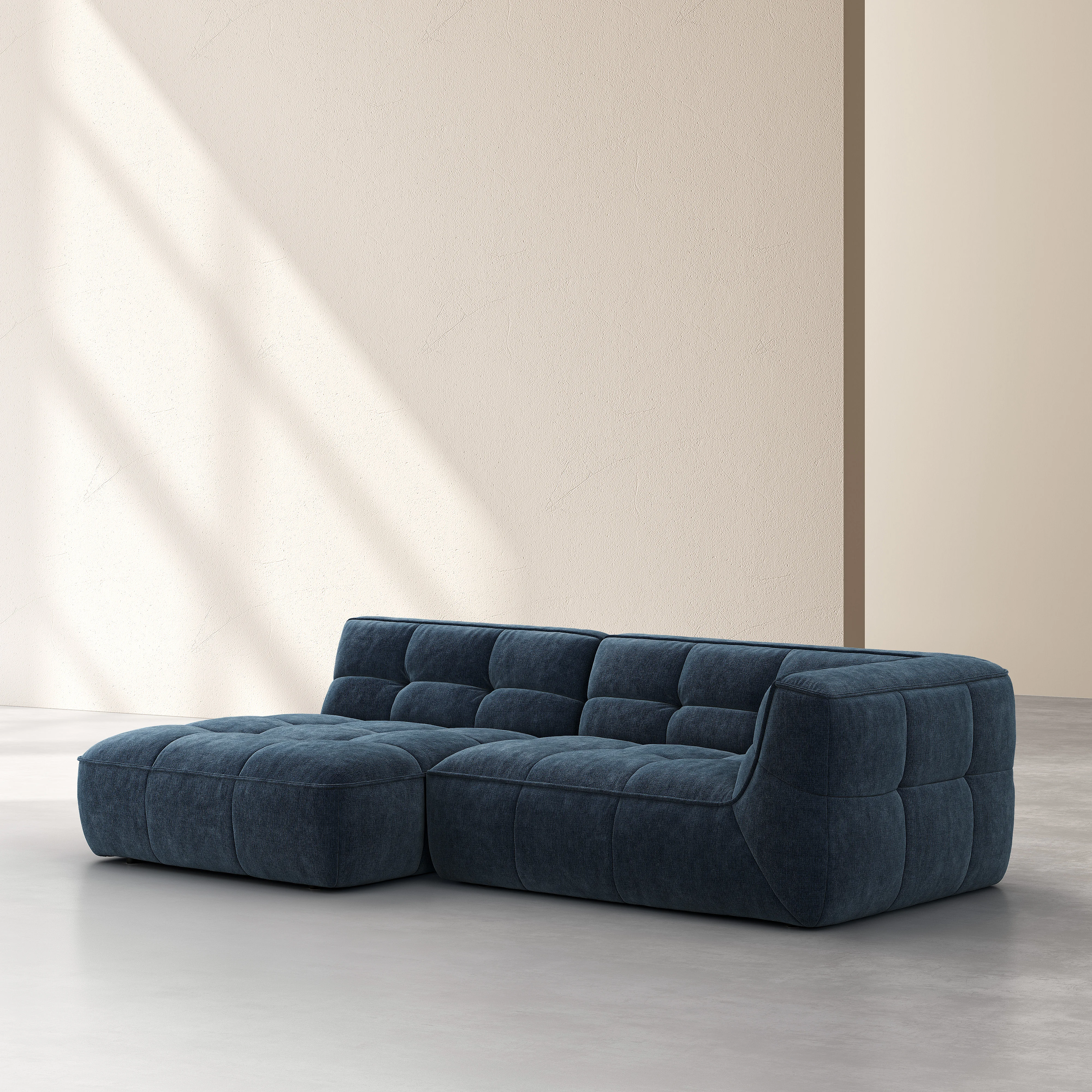 Orieto è un divano d'angolo dalle linee generose e dalla meridiana accogliente. Progettato per unire comfort e stile, diventa un elemento forte negli interni contemporanei.