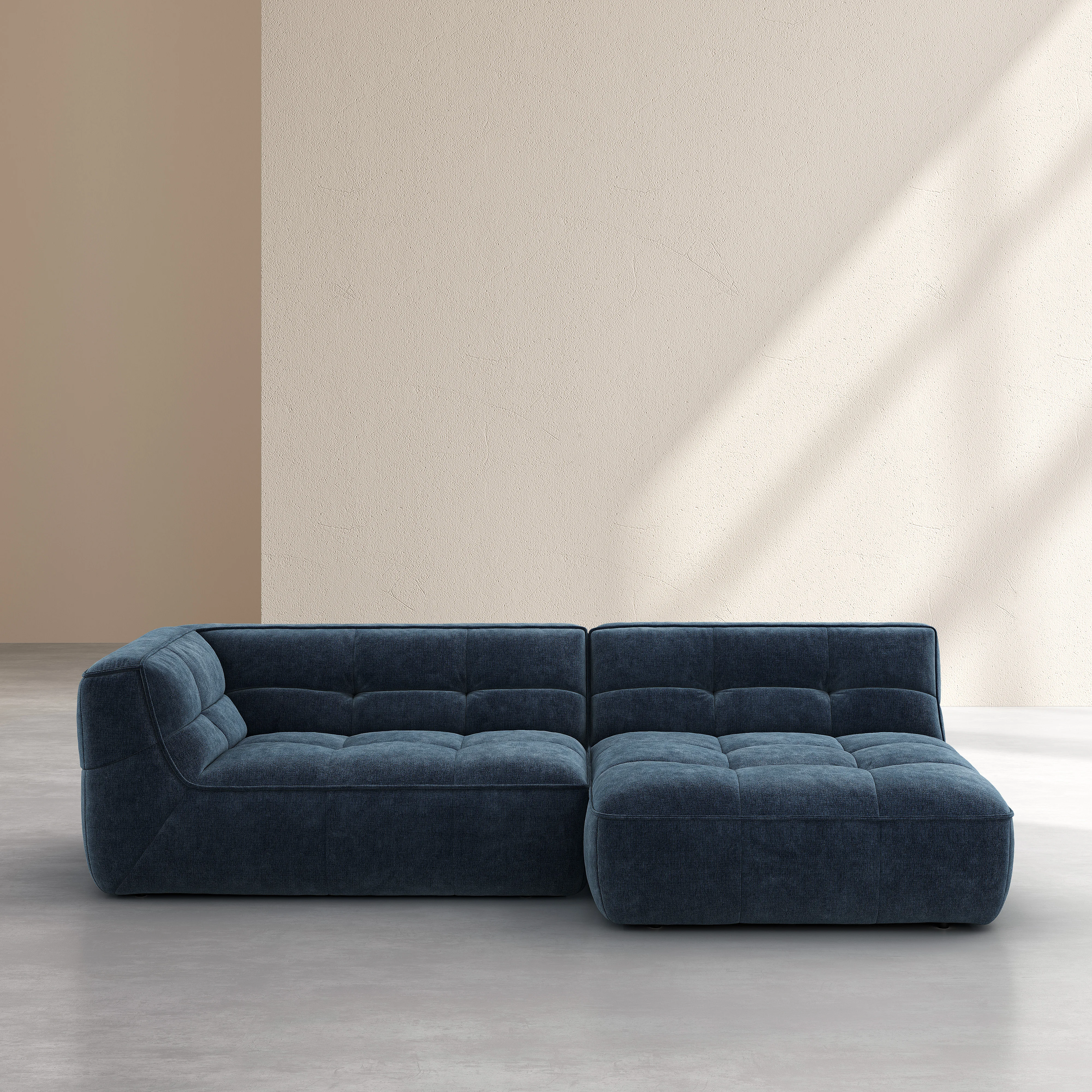 Divano d'angolo sinistro in tessuto - Blu oceano