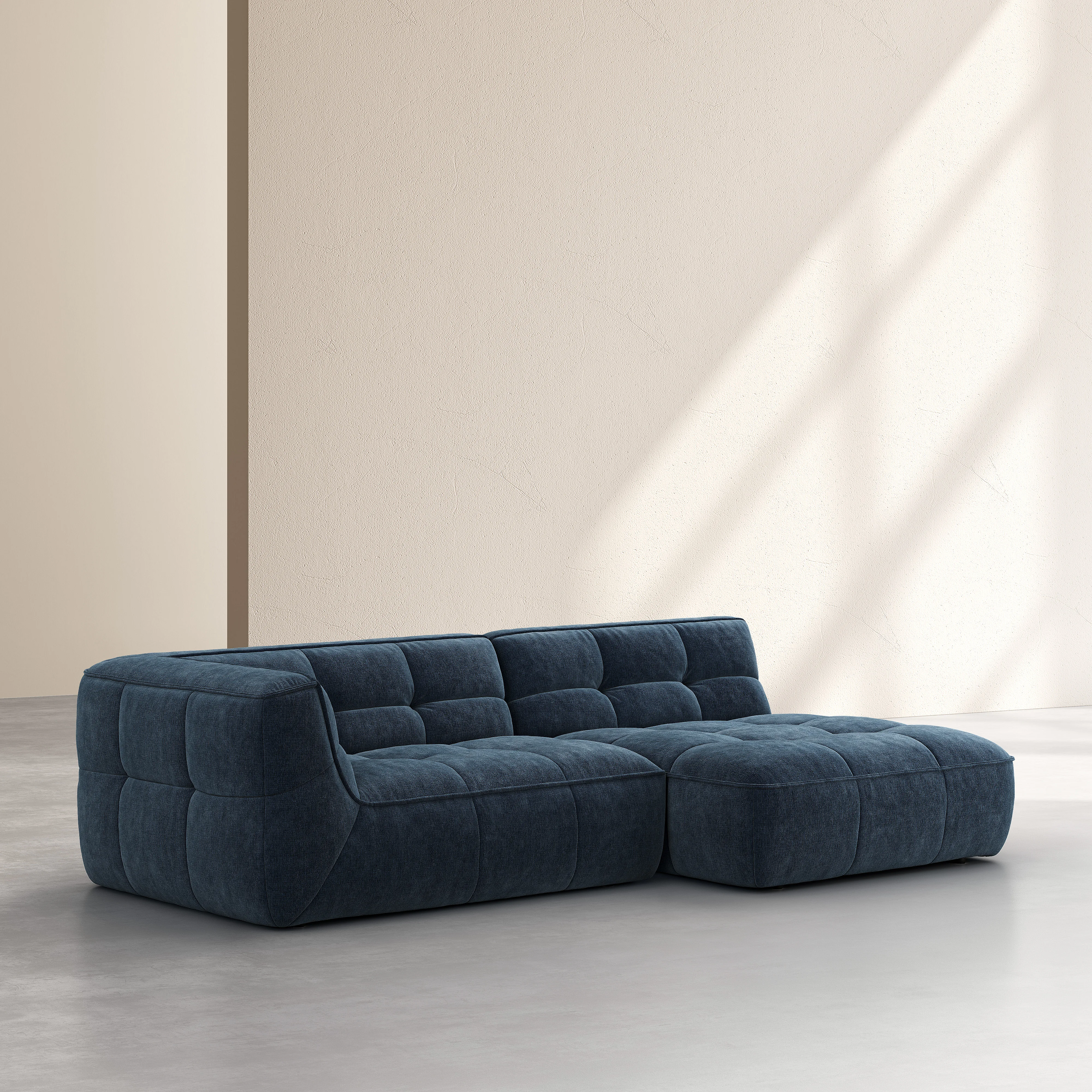 Orieto è un divano d'angolo dalle linee generose e dalla chaise longue accogliente. Progettato per unire comfort e stile, diventa un elemento forte degli interni contemporanei.
