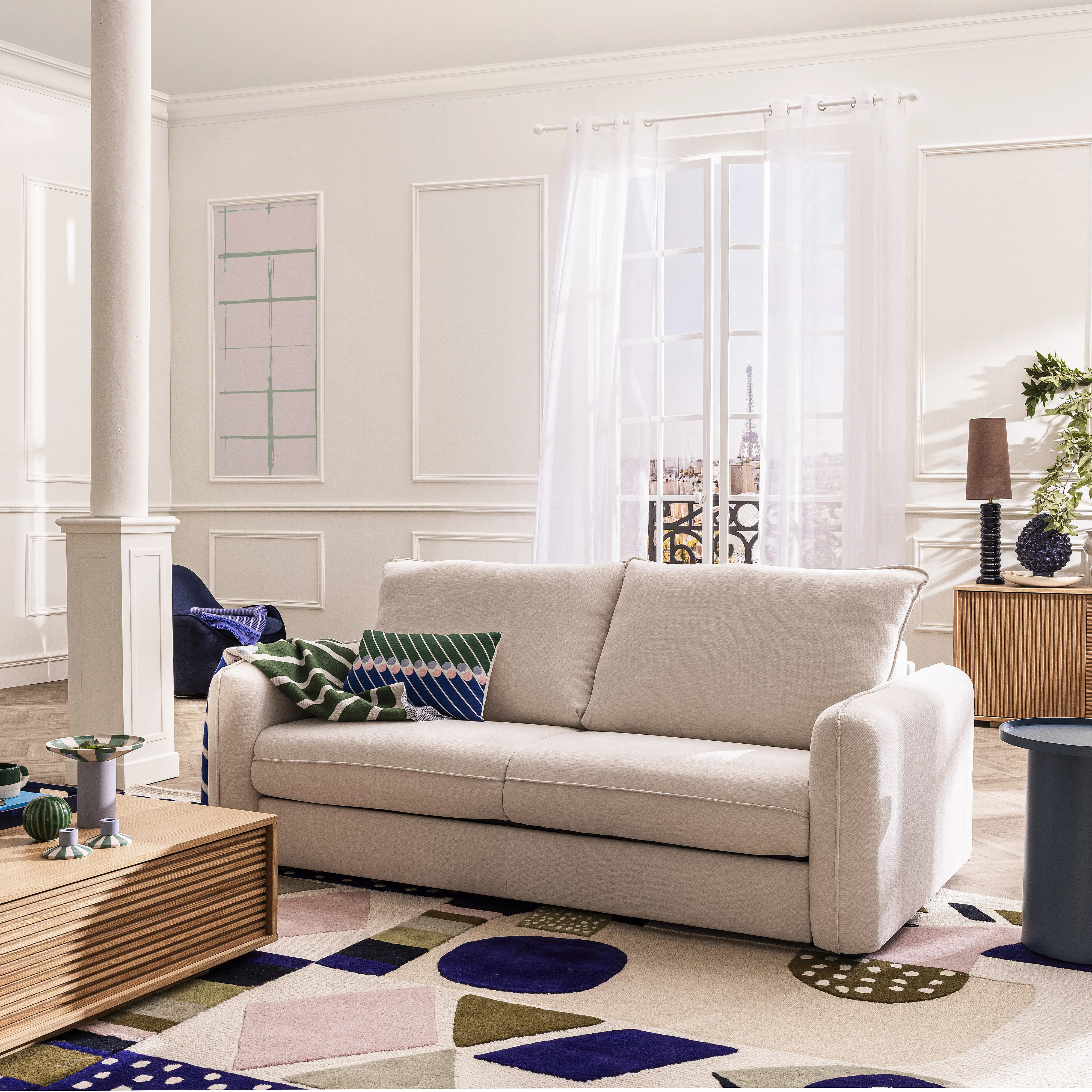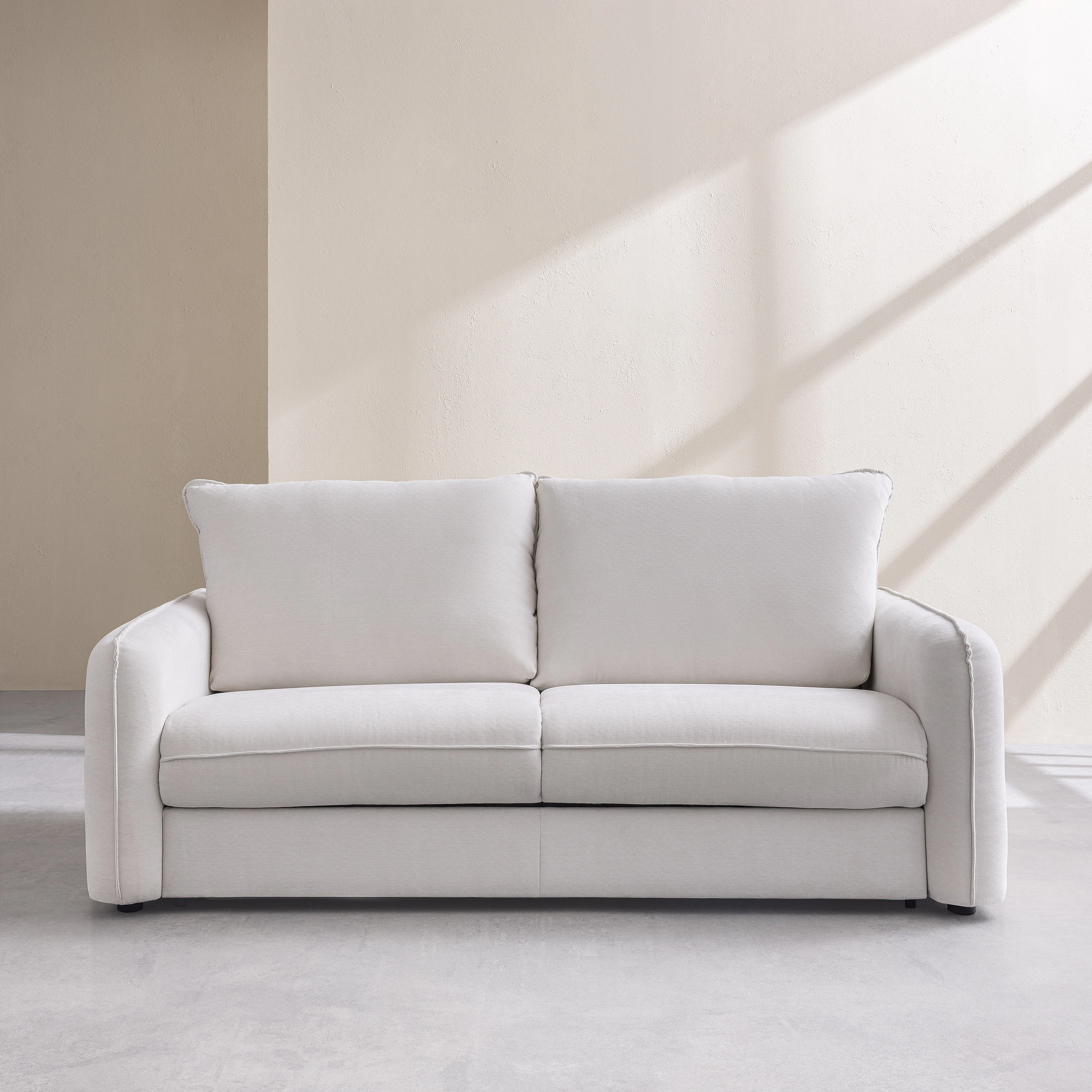 Divano letto 2 posti - Letto 140 cm - Materasso 13 cm - Tessuto Norcia Ecrù