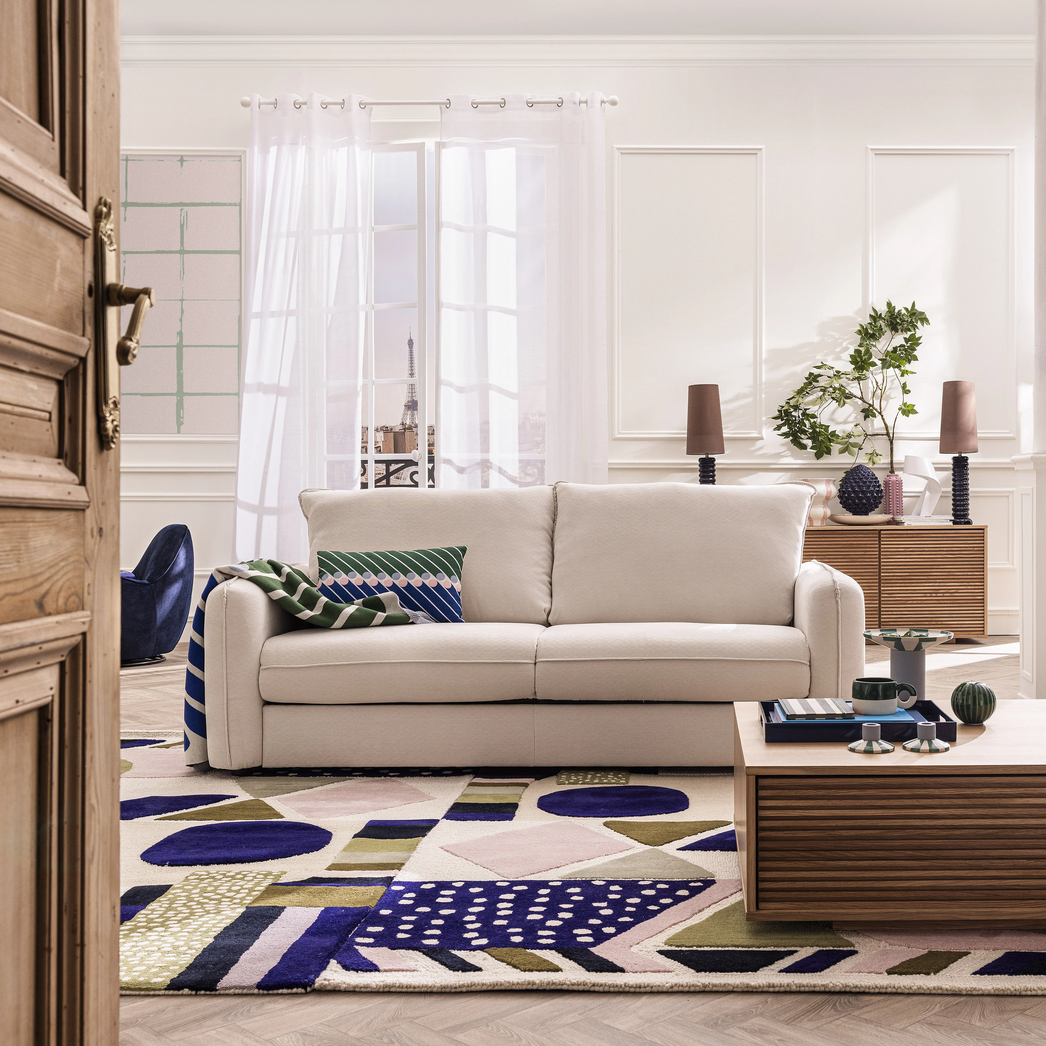Oslo incarna una morbidezza contemporanea, tra curve generose e seduta soffice. Un divano letto dalla silhouette aerea, concepito per creare un'oasi di raffinato comfort.