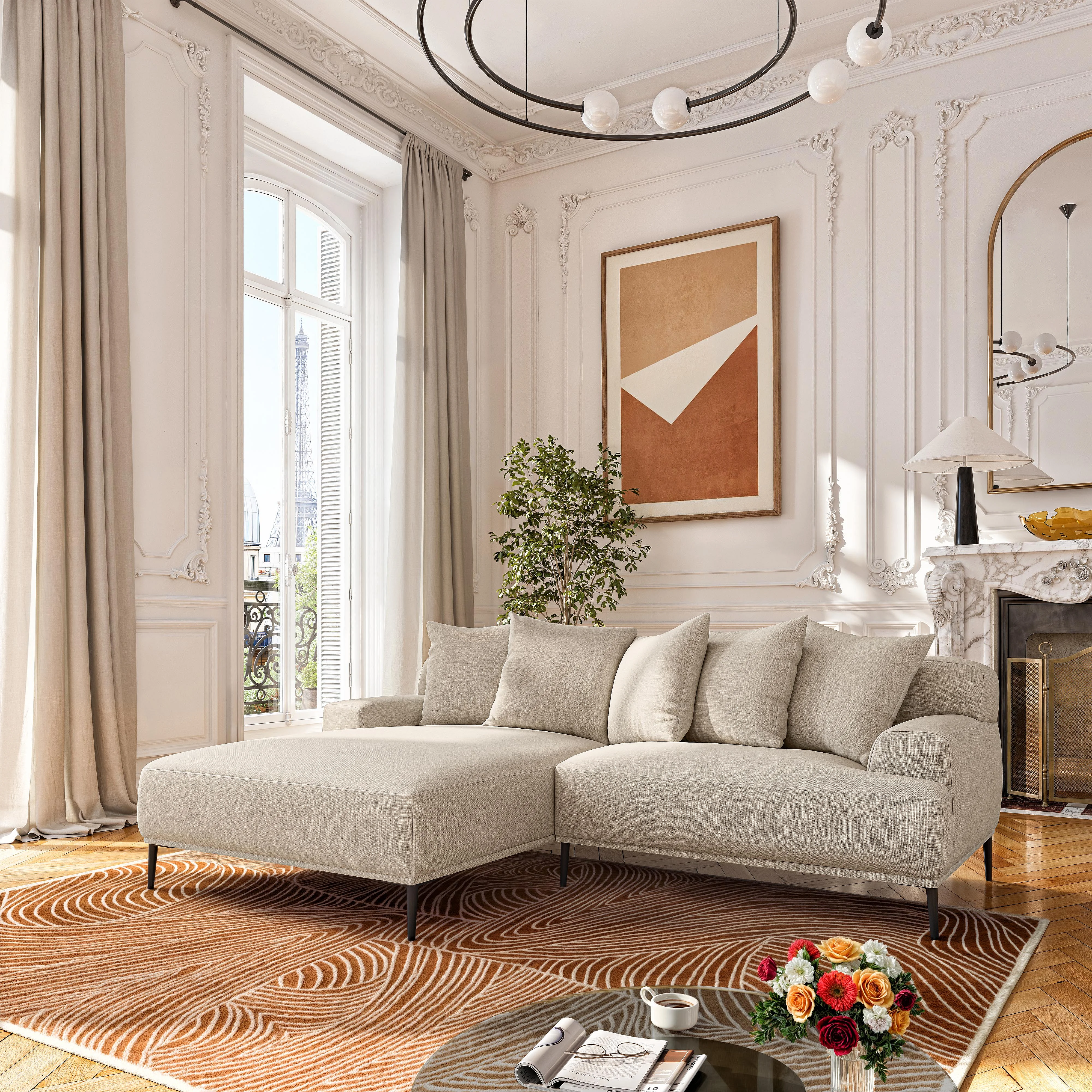 Divano d'angolo sinistro in cotone e lino imbottito di piume - Beige