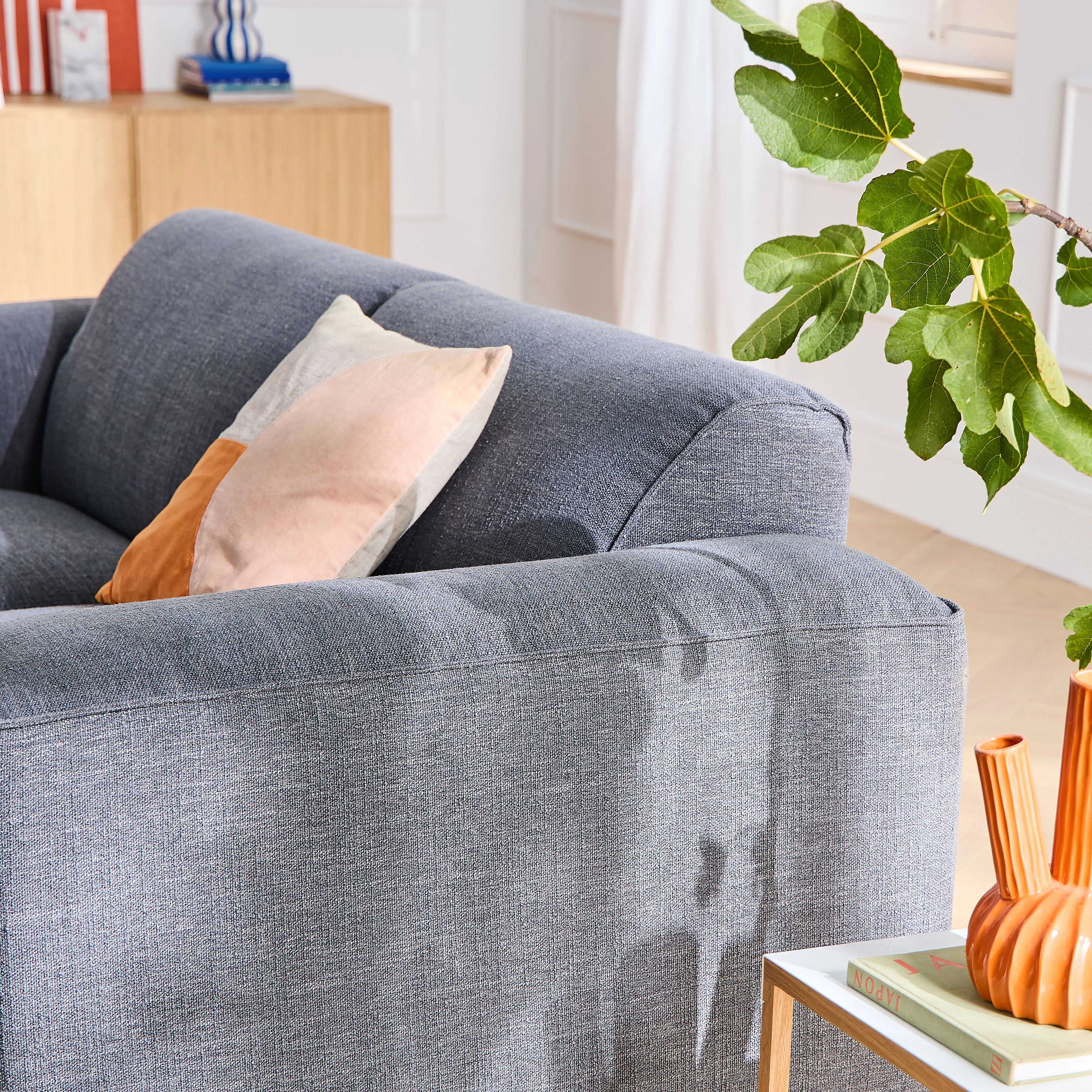 Divano 3 posti in tessuto bouclé corto Mira - Blu denim