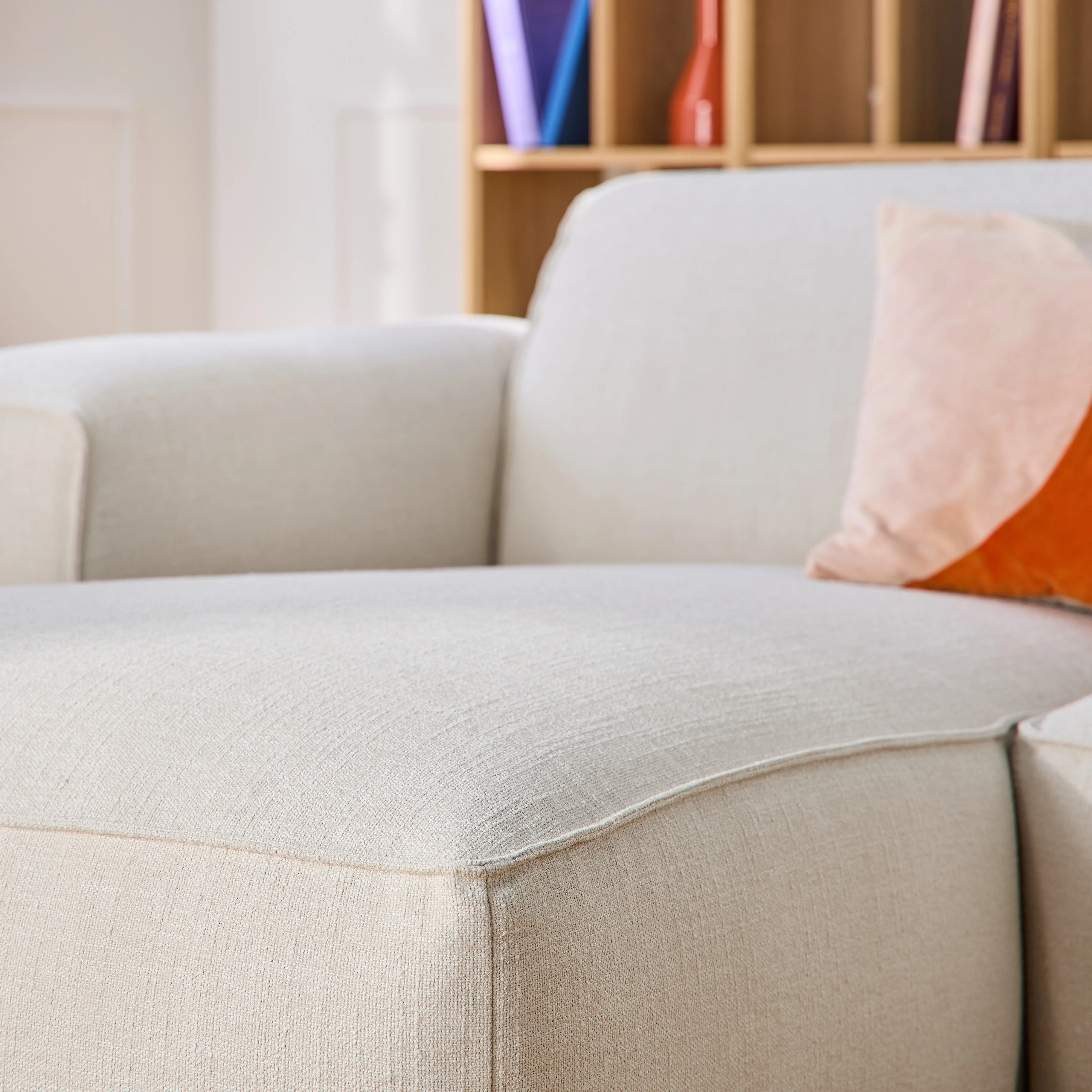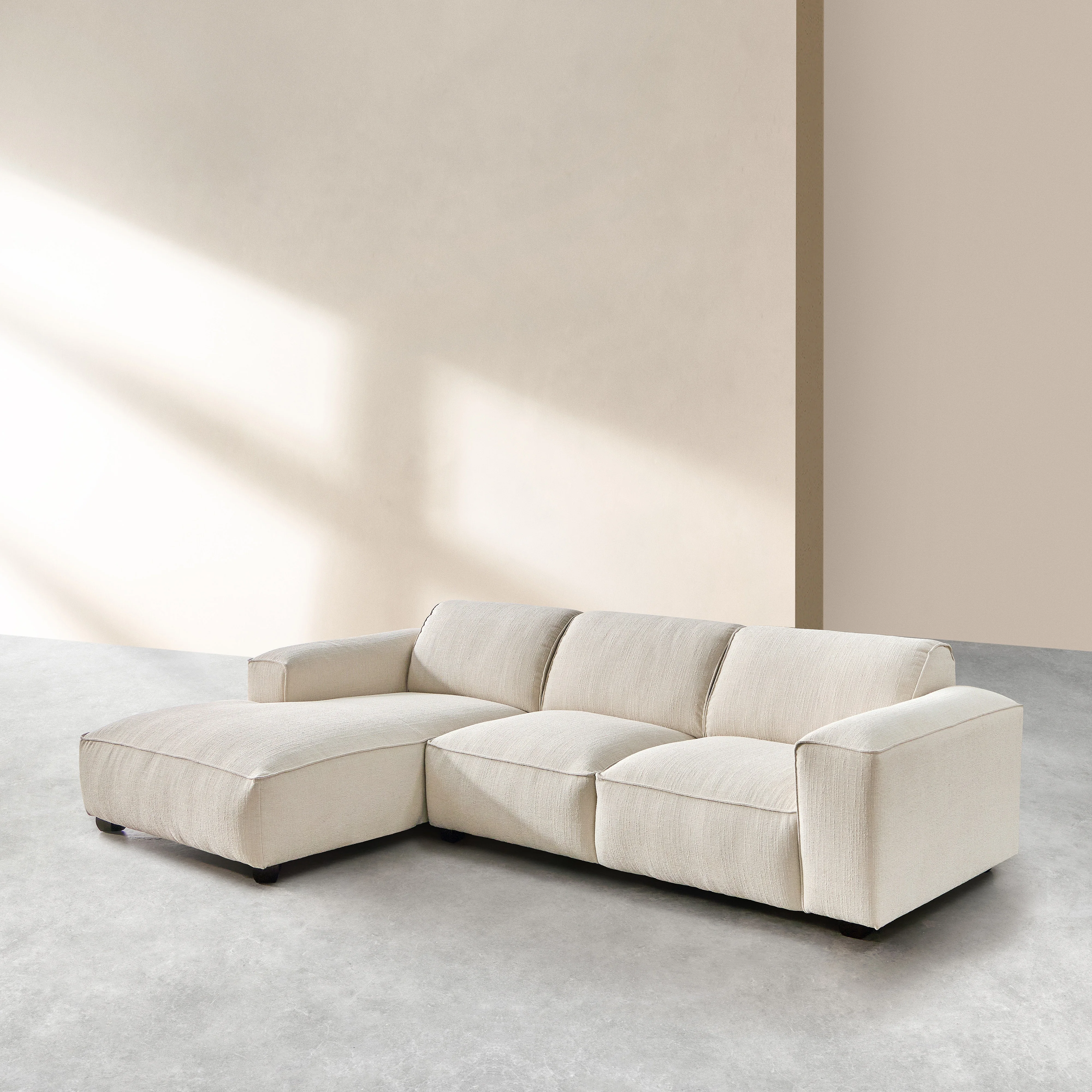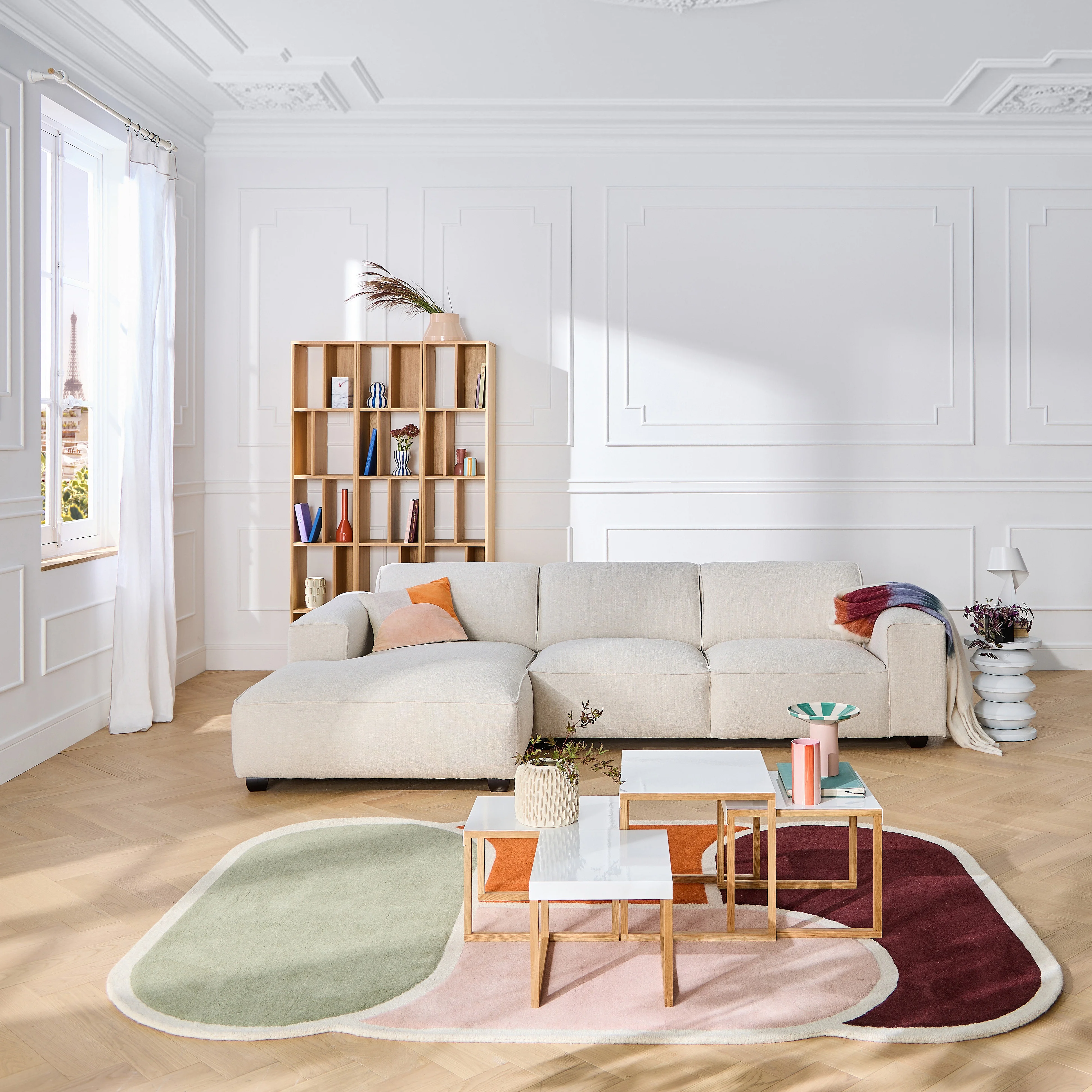 Divano angolare sinistro in tessuto bouclé corto Mira - Avorio