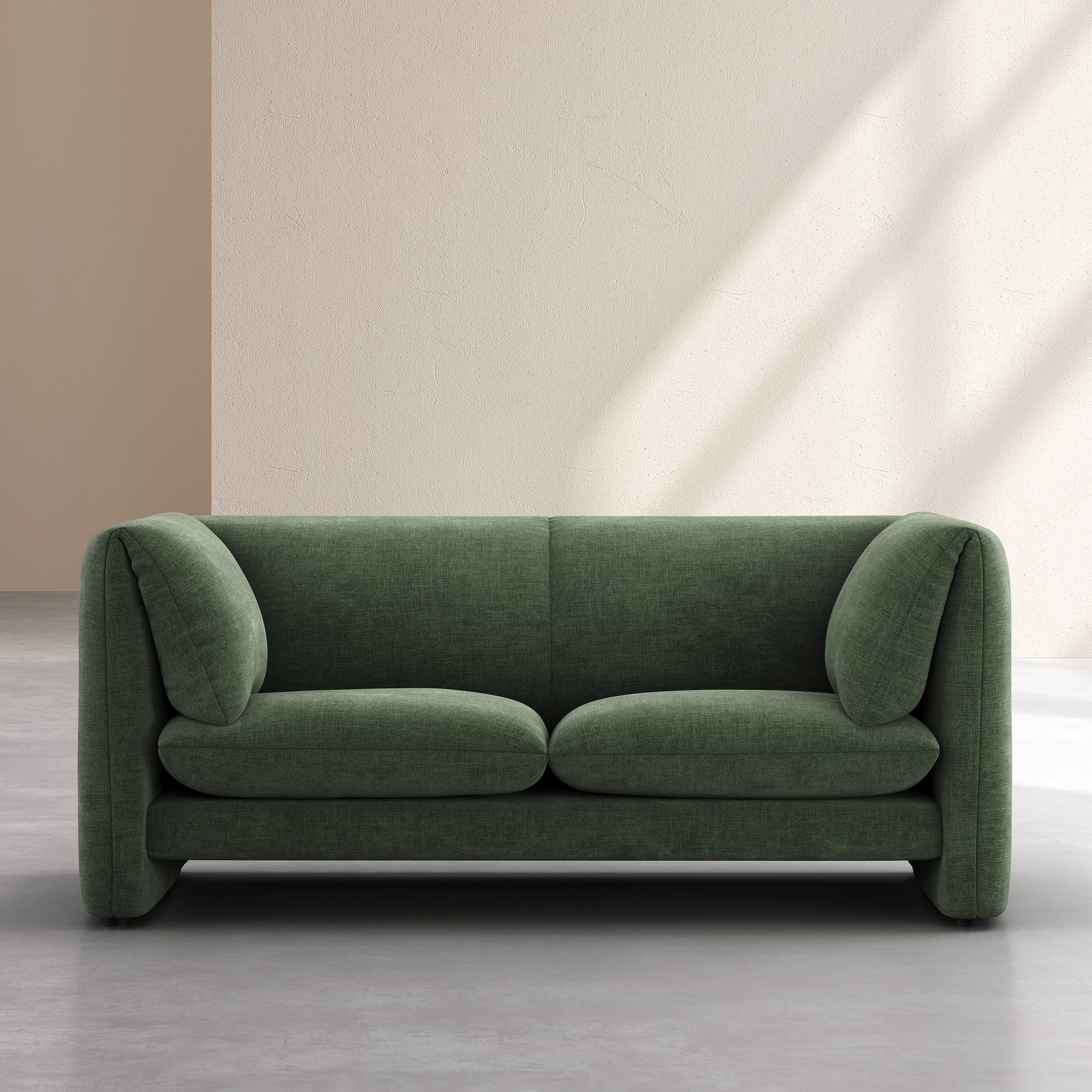 Con curve morbide e design pulito, questo divano unisce comfort avvolgente e equilibrio visivo. I braccioli integrati sottolineano la sua silhouette singolare.
