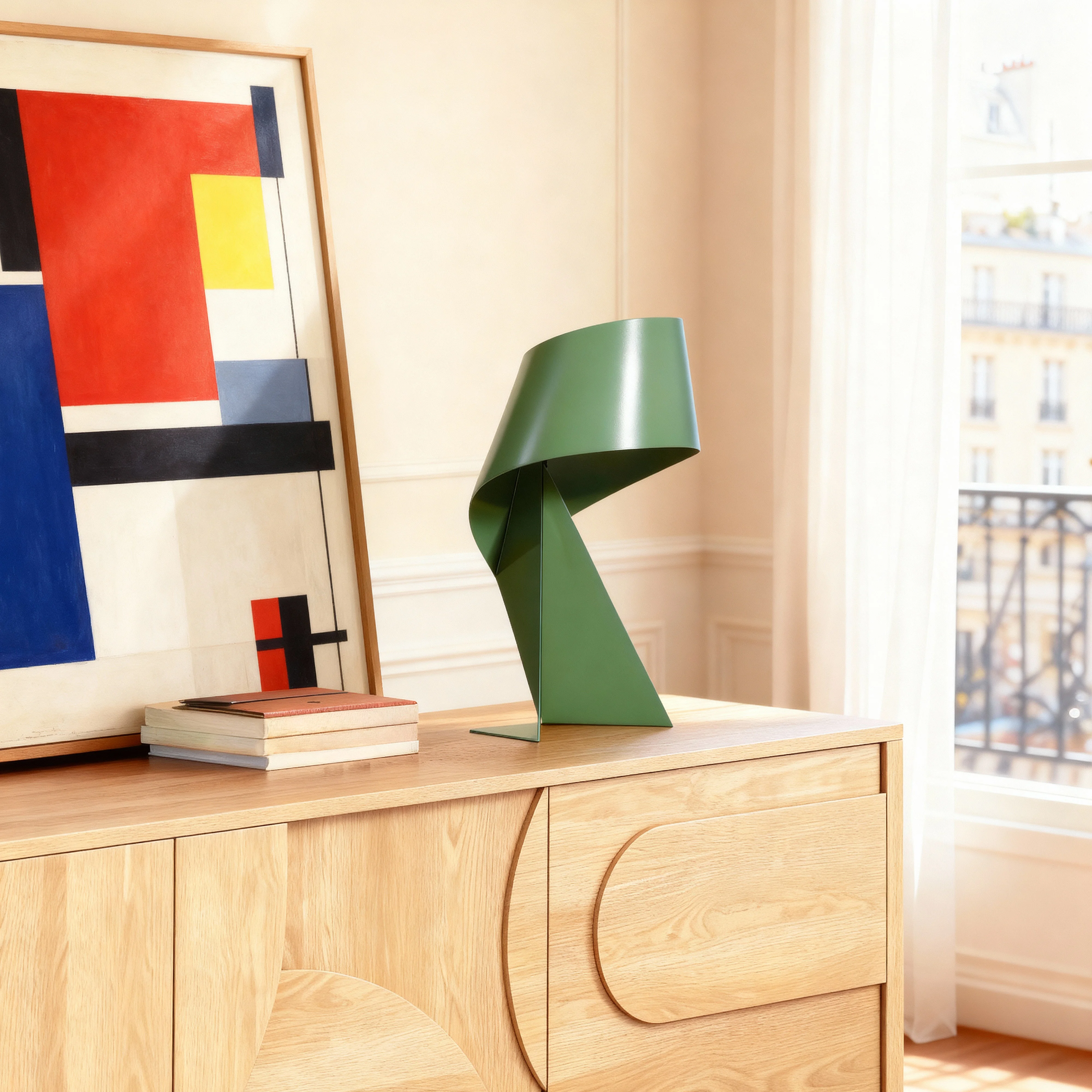 Ribbon trasforma un semplice foglio d'acciaio in un oggetto luminoso sculturale. Una lampada iconica dal design fluido, fabbricata in Francia e premiata per la sua audacia.