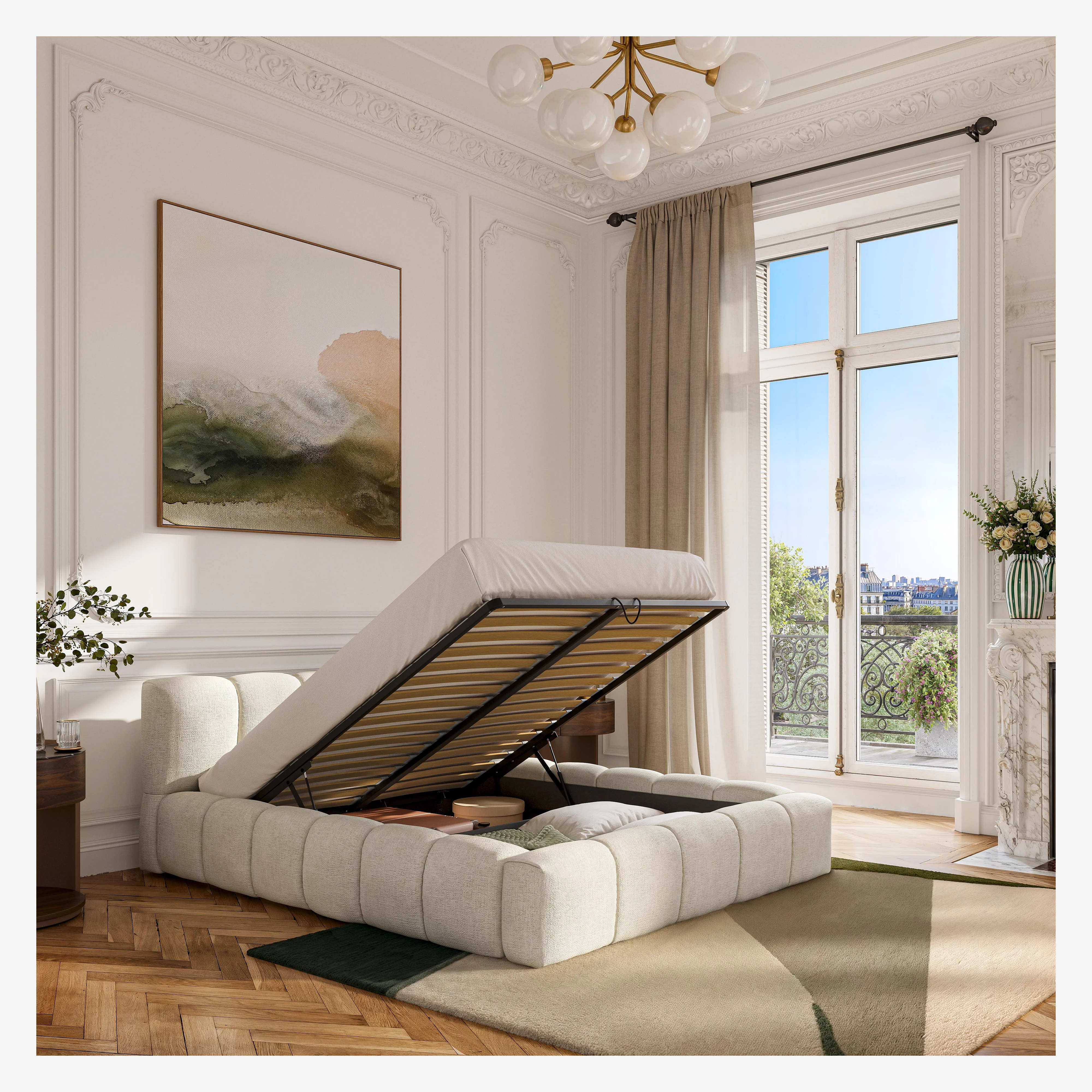 Setana, l'arte di combinare il comfort avvolgente e la praticità discreta in un design contemporaneo. Un ampio scrigno dove il sonno diventa un'esperienza straordinaria.