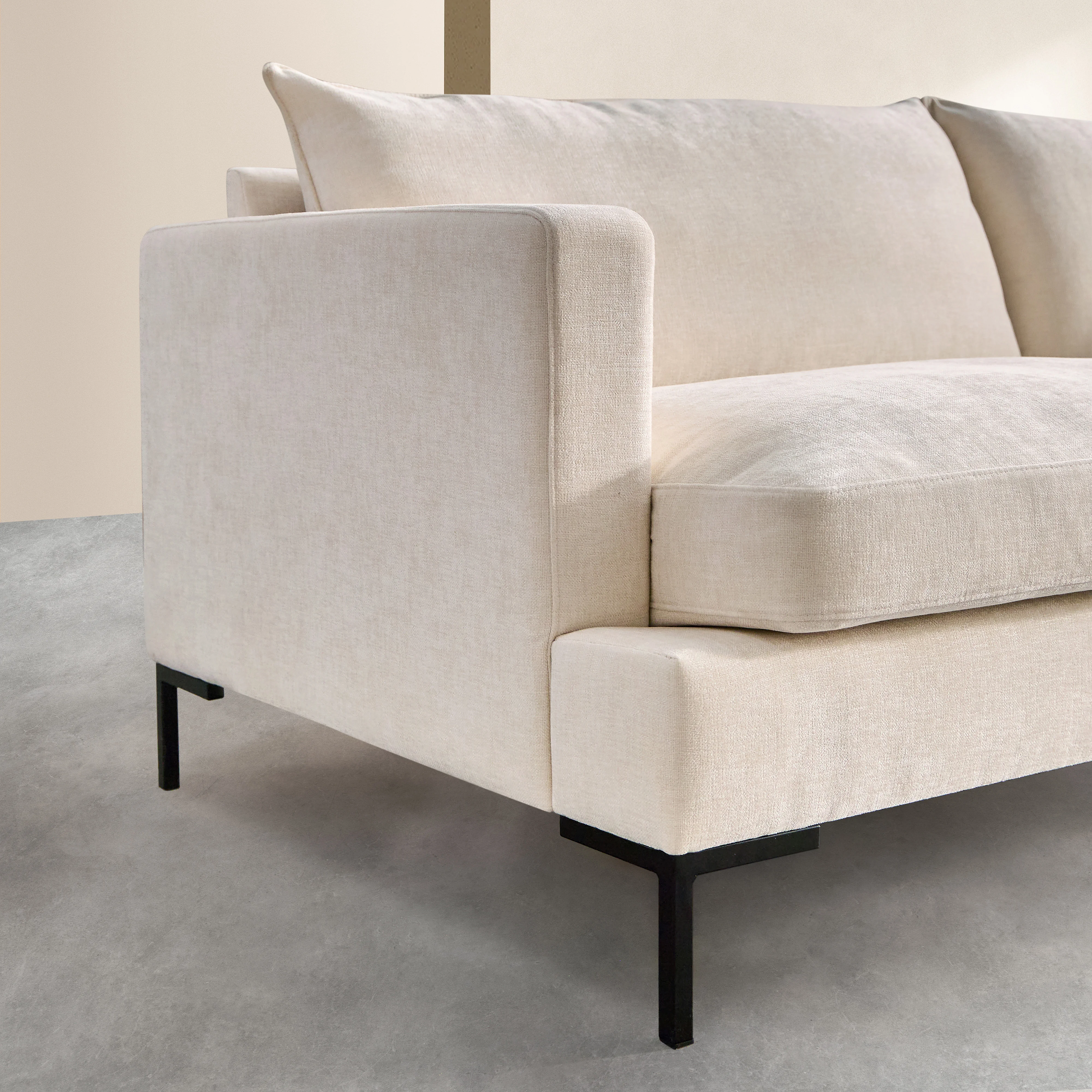 Sierra coniuga linee pure e seduta morbida in piume in un'eleganza discreta. Un divano dall'estetica aerea, pensato per esaltare il comfort quotidiano.