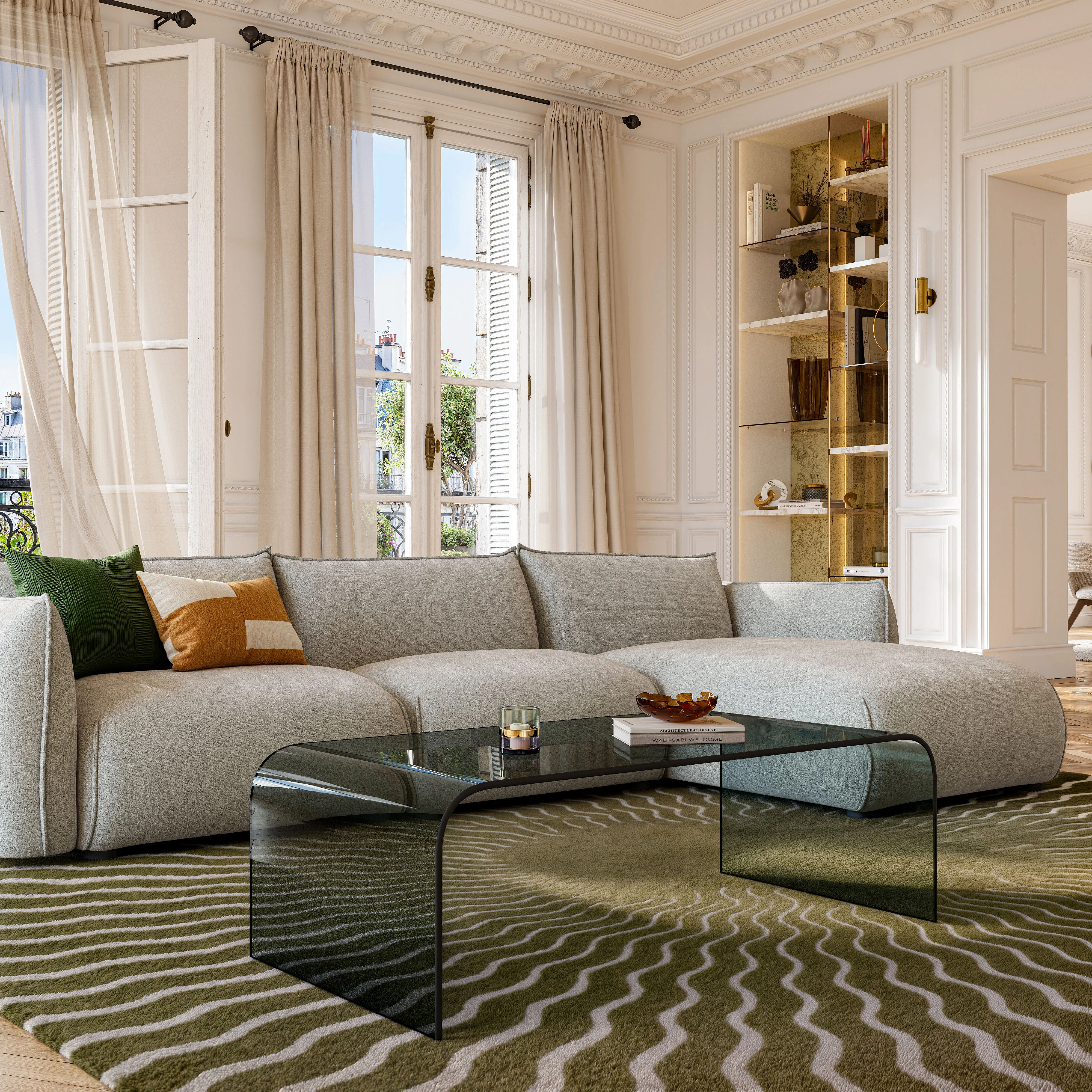 Curve arrotondate, vetro colorato e silhouette minimalista, questo tavolino si impone con leggerezza in un ambiente. Un design fluido che riscalda il soggiorno con delicatezza.