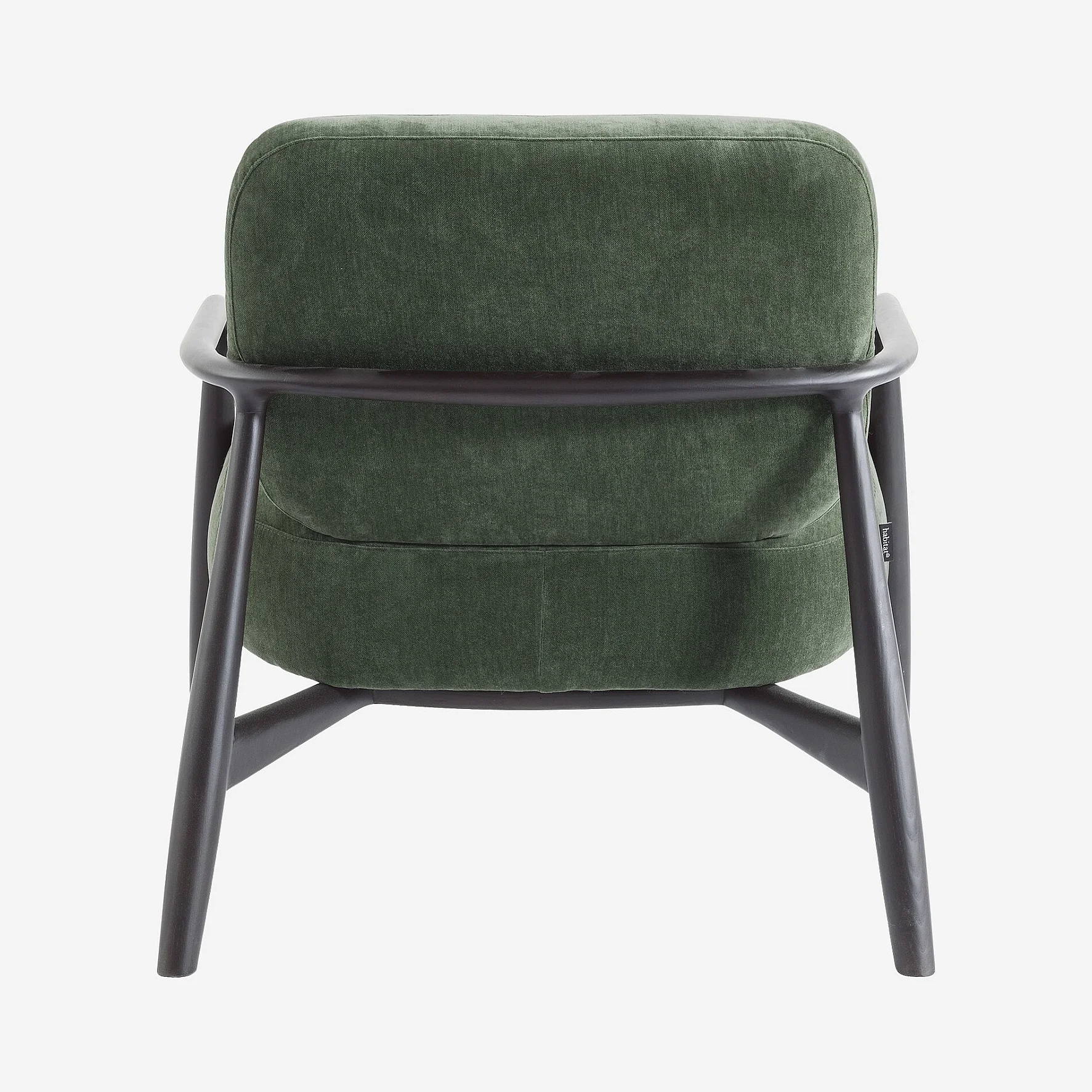 Velika combina un tessuto morbidissimo con una struttura in legno massello. Una poltrona elegante e accogliente che unisce stile contemporaneo e comfort raffinato.