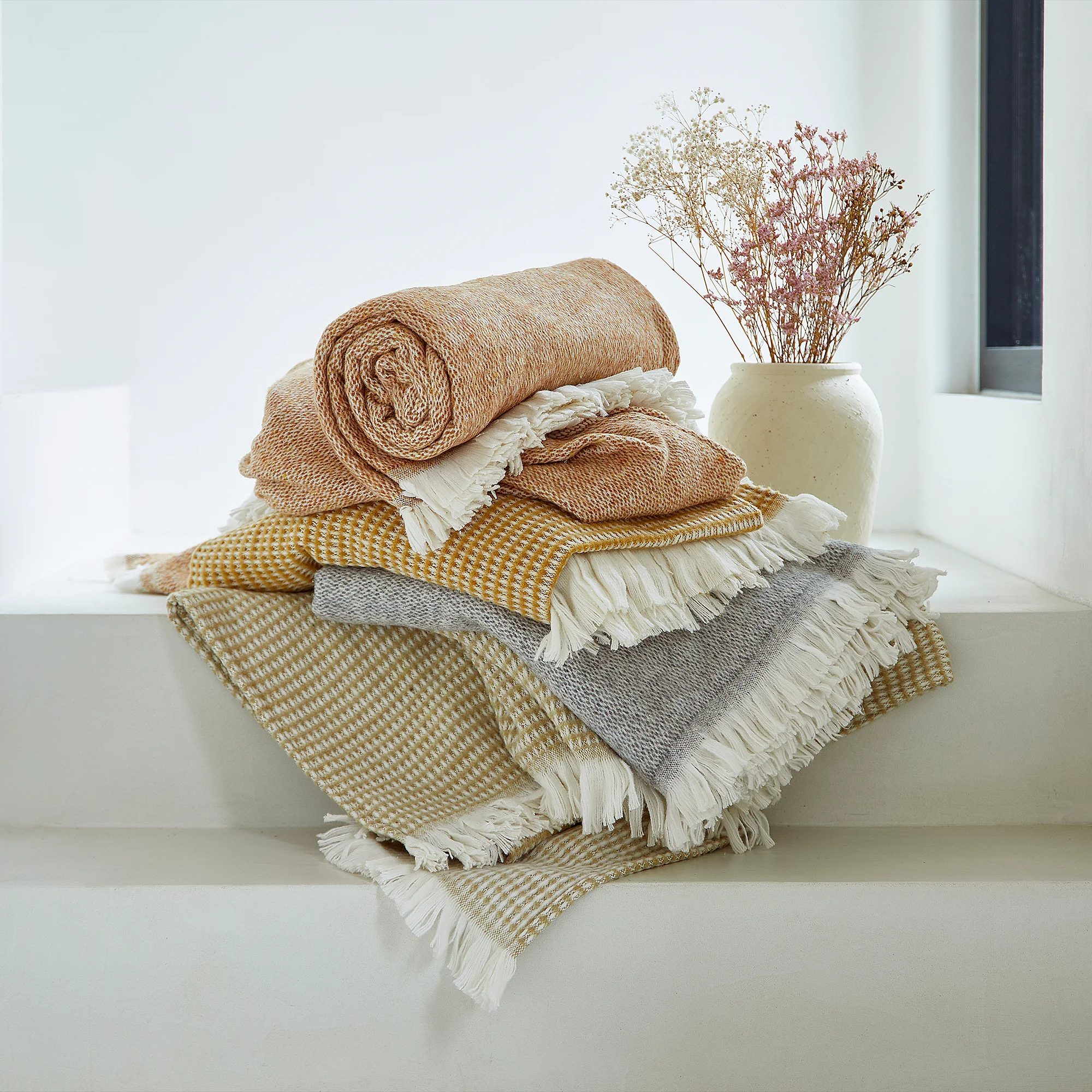 Angelique combina materiali riciclati e morbidezza naturale per riscaldare gli interni. Una coperta elegante che invita a gustare momenti di comfort.