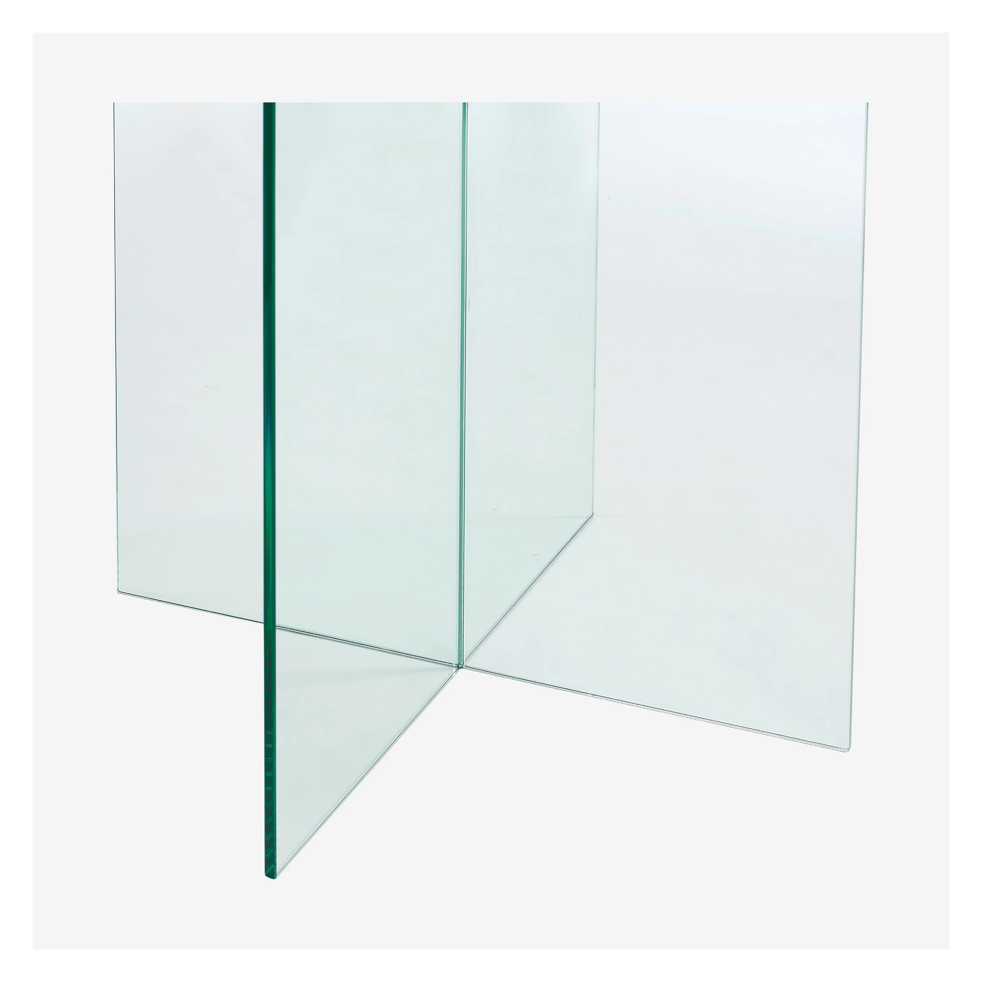 Trasparenza cristallina e base incrociata compongono questo tavolo rotondo Elory dal design scultoreo, dove il sottile equilibrio dei volumi sublima la convivialità con un'eleganza contemporanea.