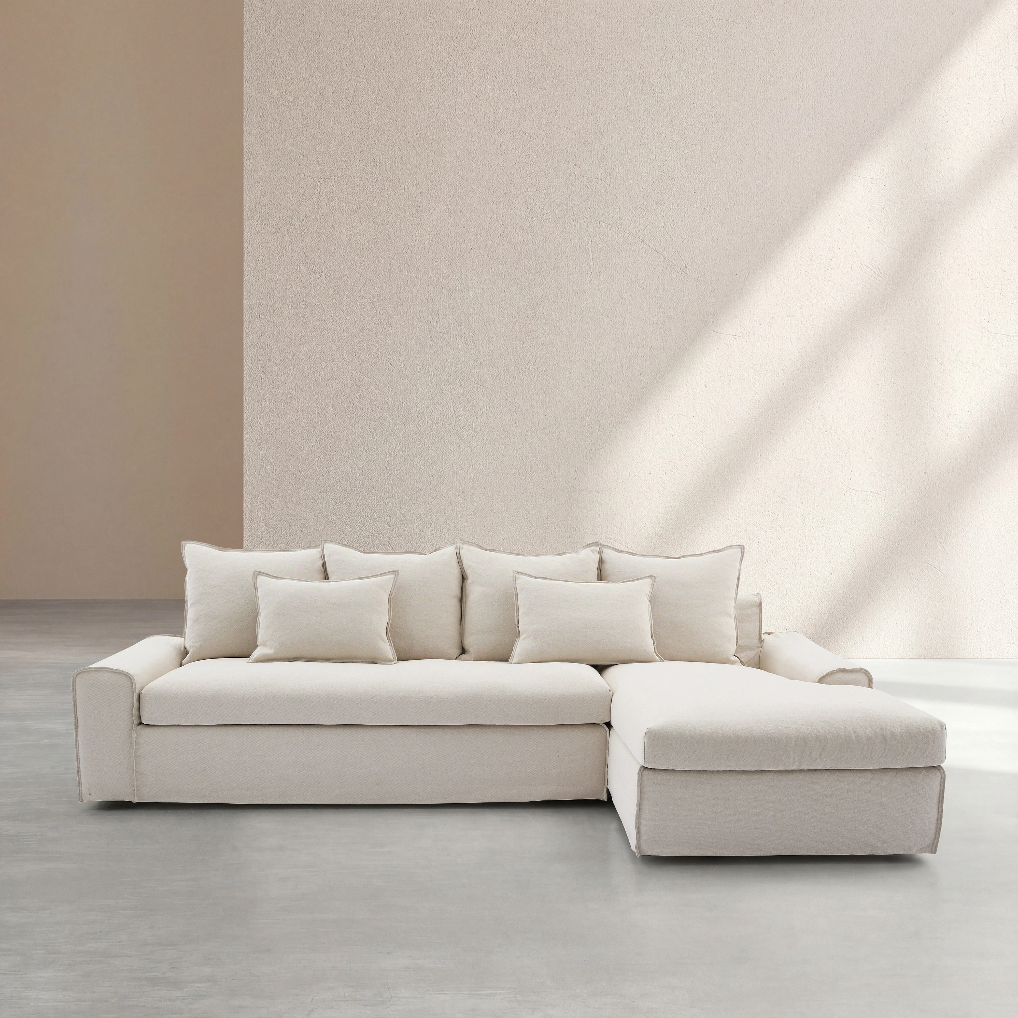 Divano angolare destro sfoderabile in cotone e lino imbottito di piume - Sabbia bianca