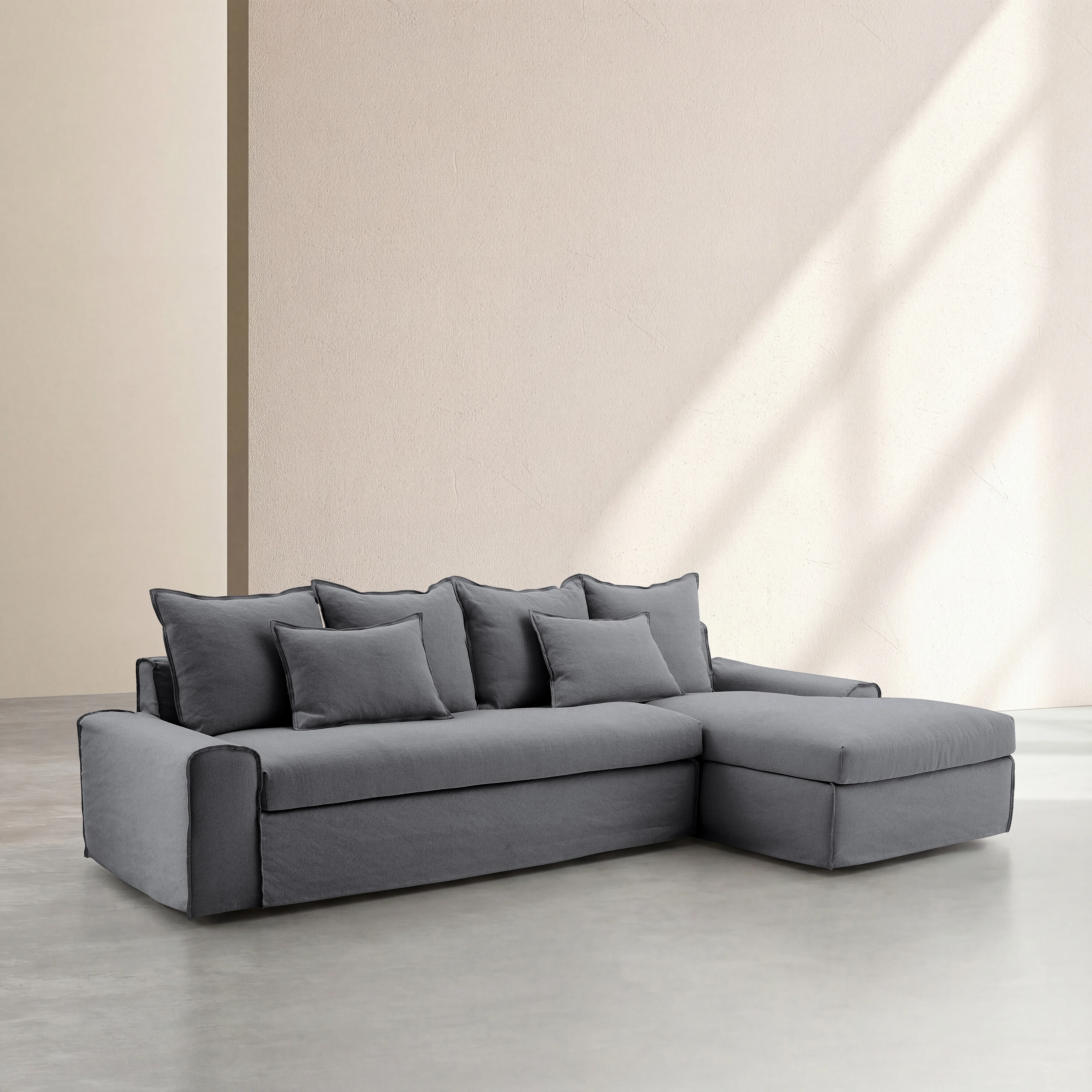 Divano d'angolo destro sfoderabile in cotone e lino imbottito di piume - Grigio ardesia