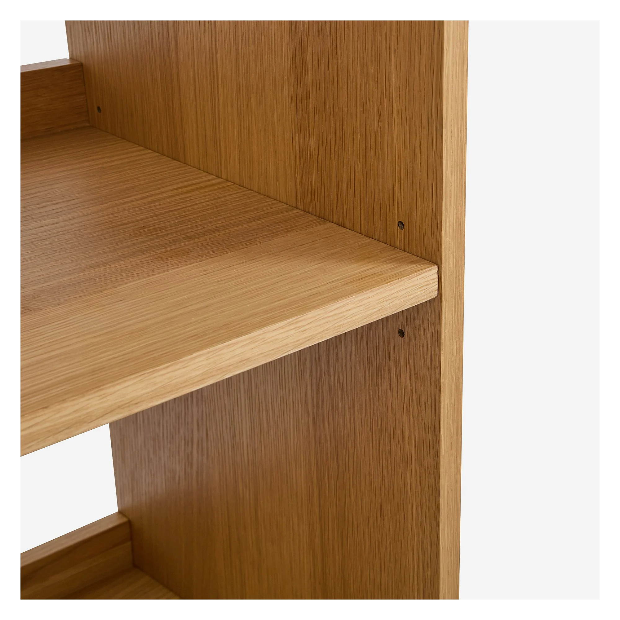 Kuda gioca sul ritmo tra nicchie aperte e vani chiusi per strutturare lo spazio con equilibrio. Una libreria grafica e funzionale, pensata per accogliere libri e oggetti con stile.