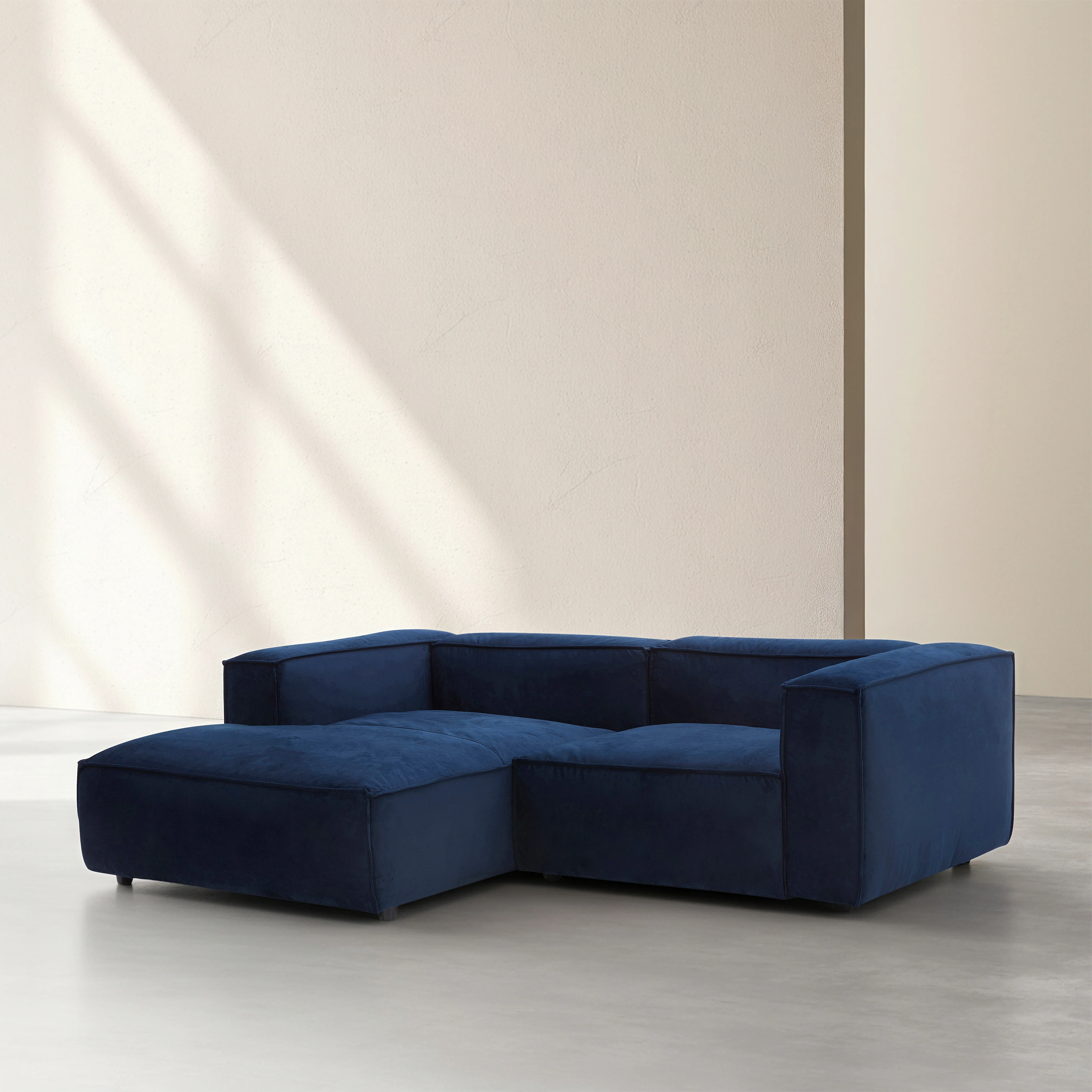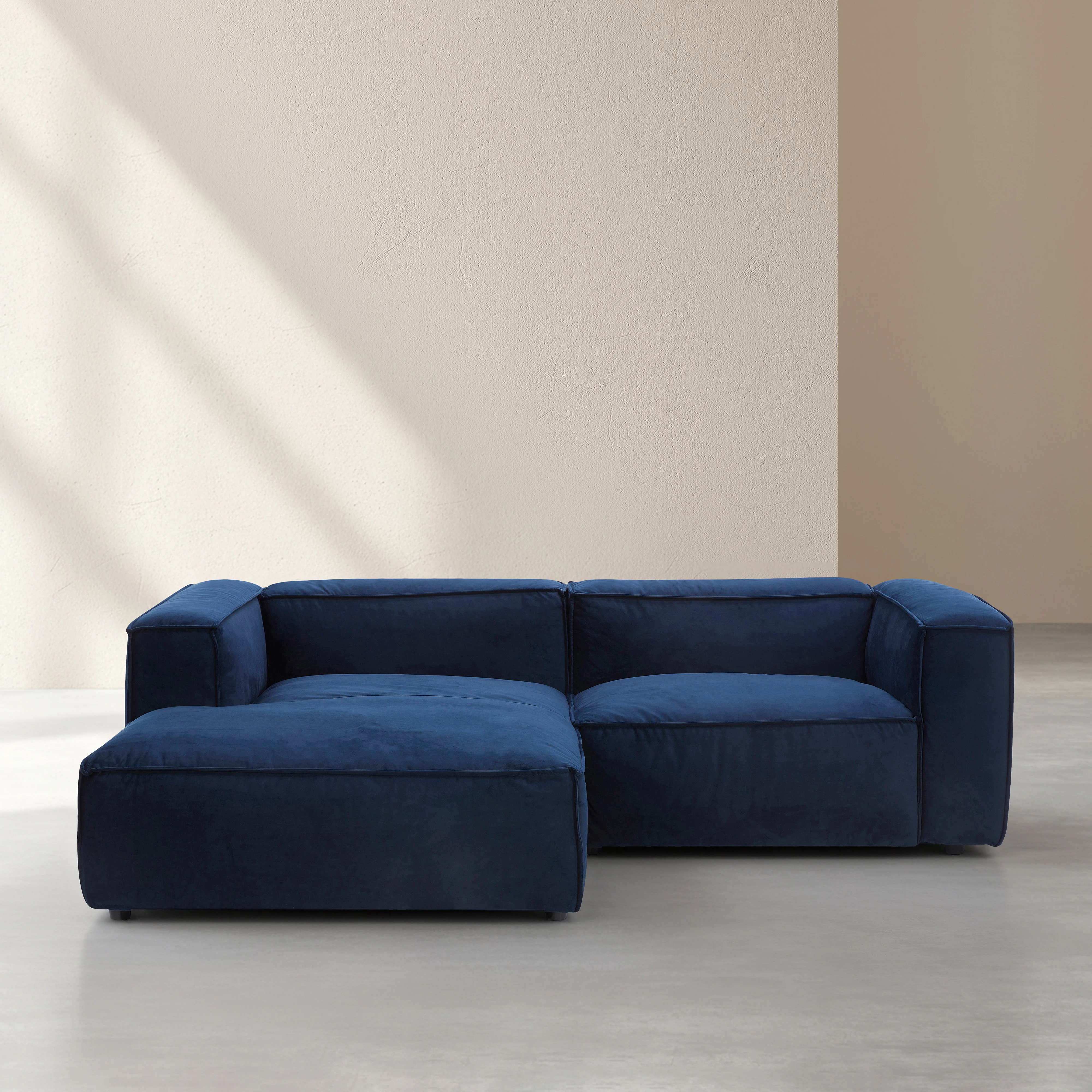 Divano angolare sinistro in velluto - Blu marino