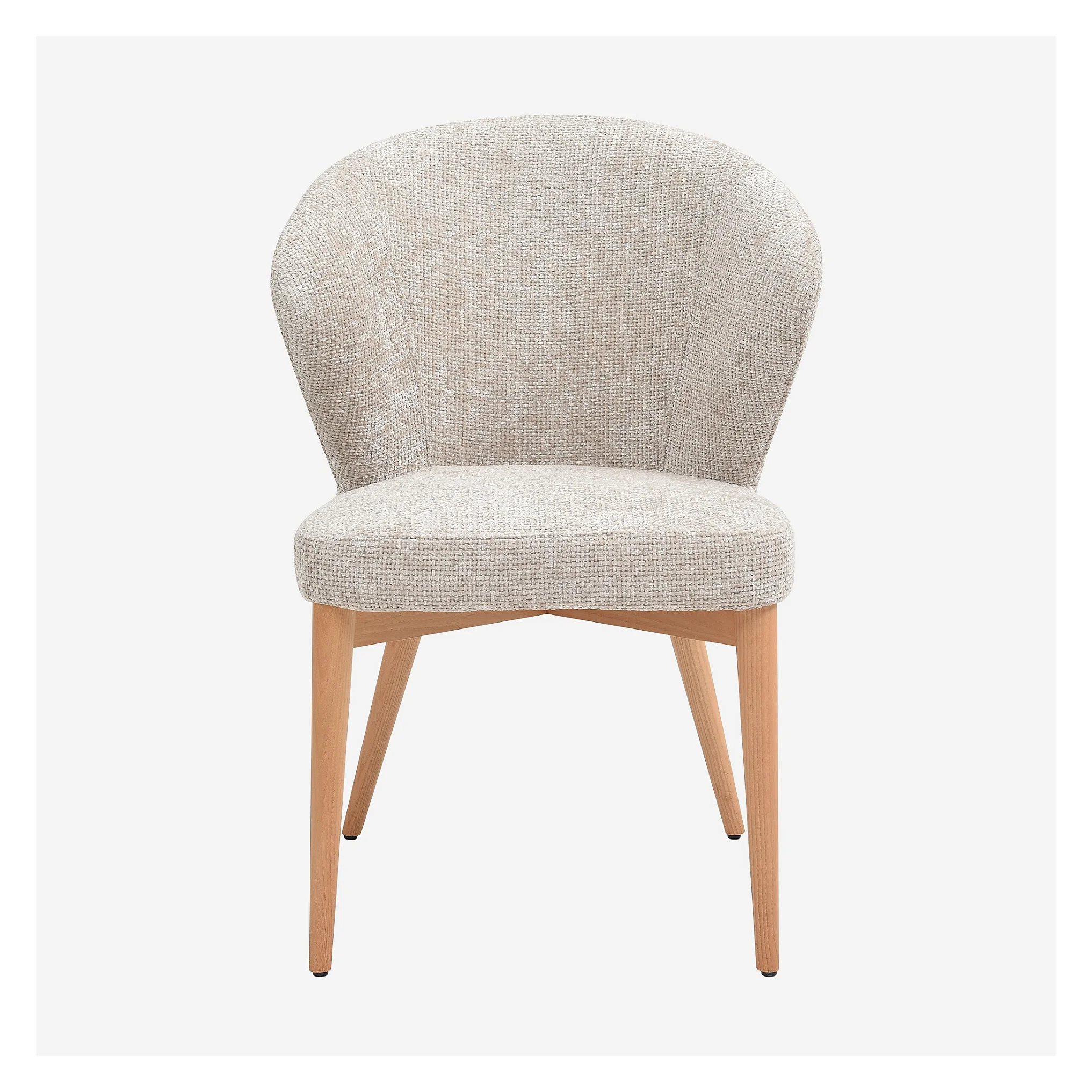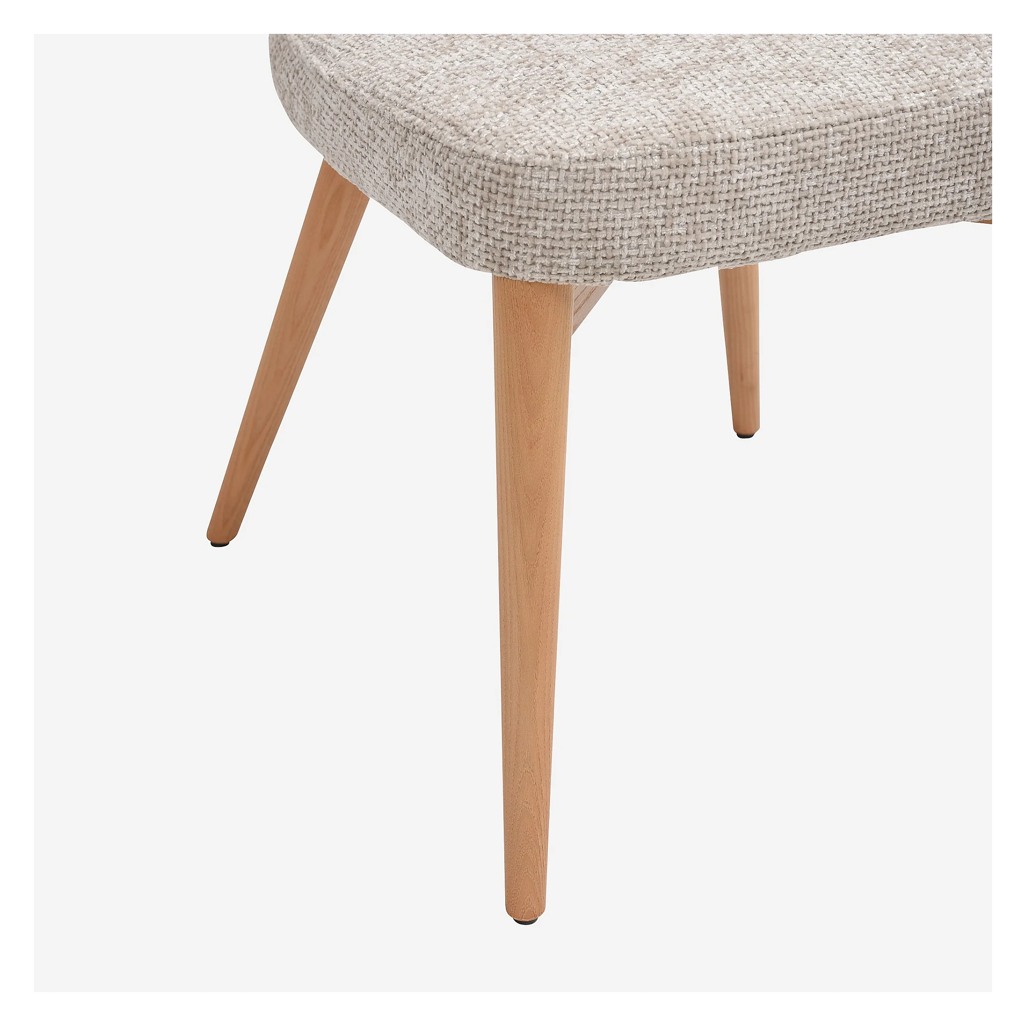 Set di 2 sedie in tessuto chenille e legno massiccio colore rovere - Crema