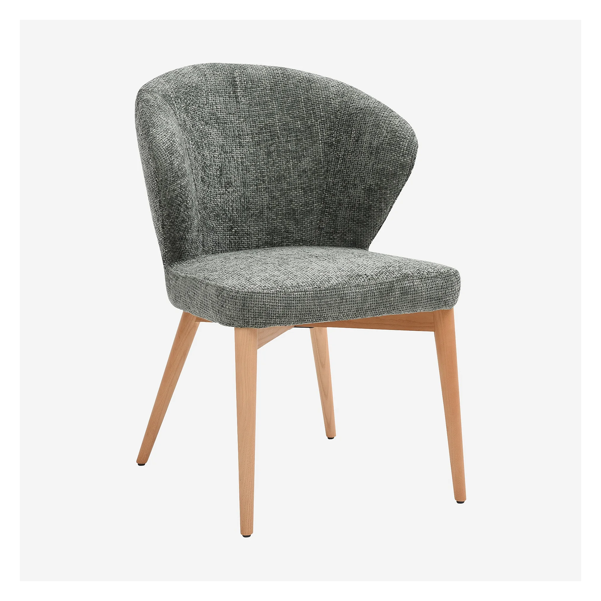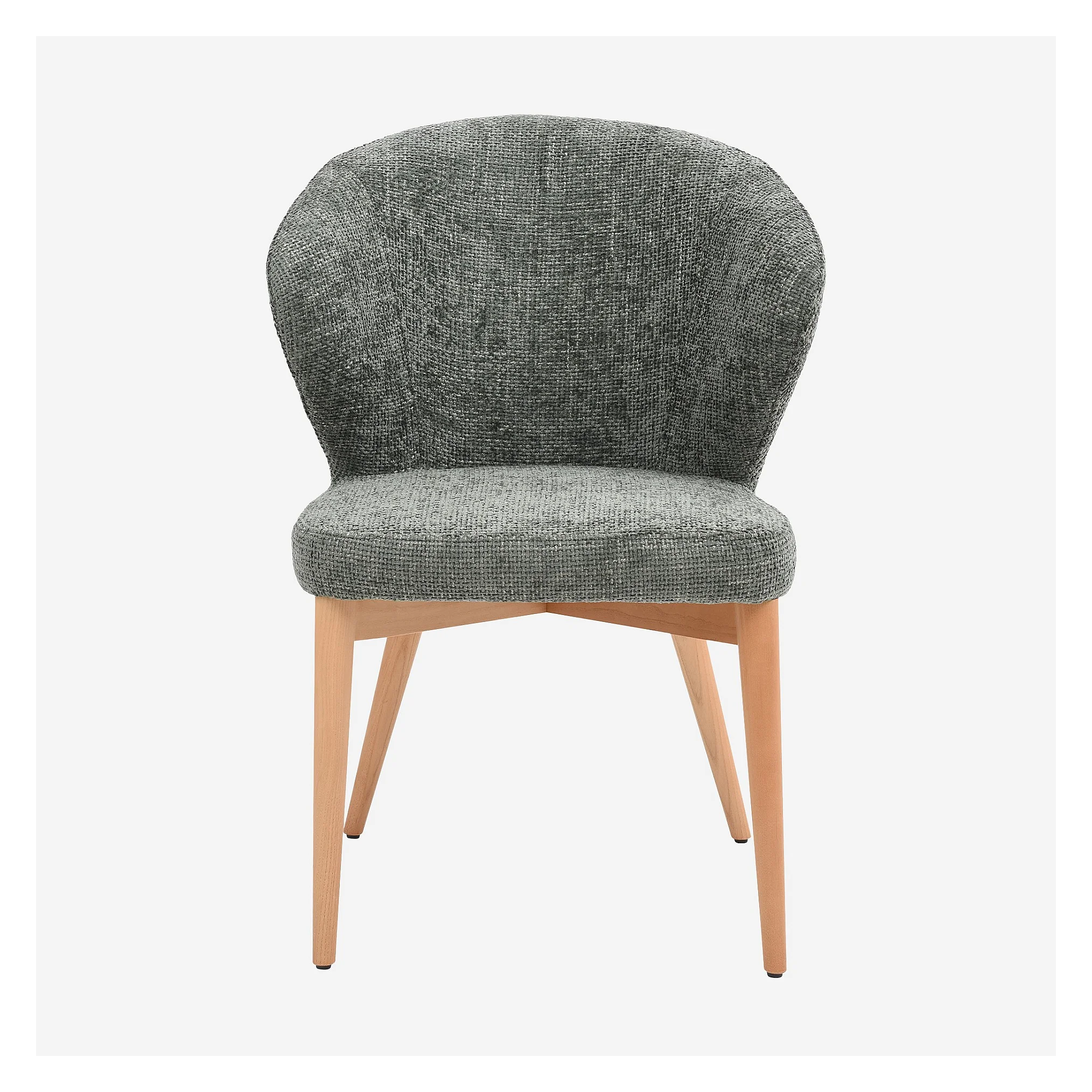 Set di 2 sedie in tessuto di velluto e legno massello in colore quercia - Verde abete