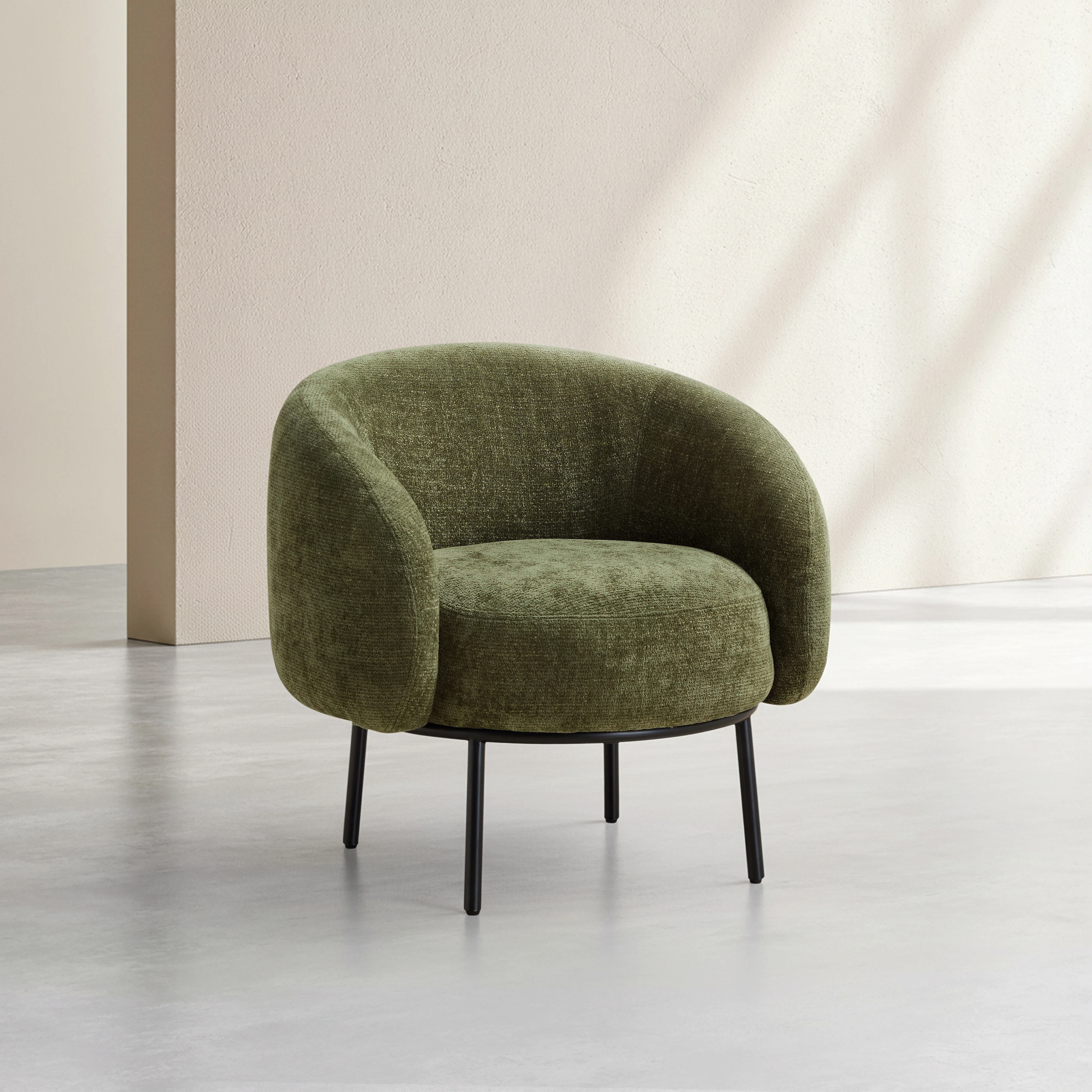 Fauteuil in chenille stof en zwart metaal - Kaki groen - Design by Adrien Carvès