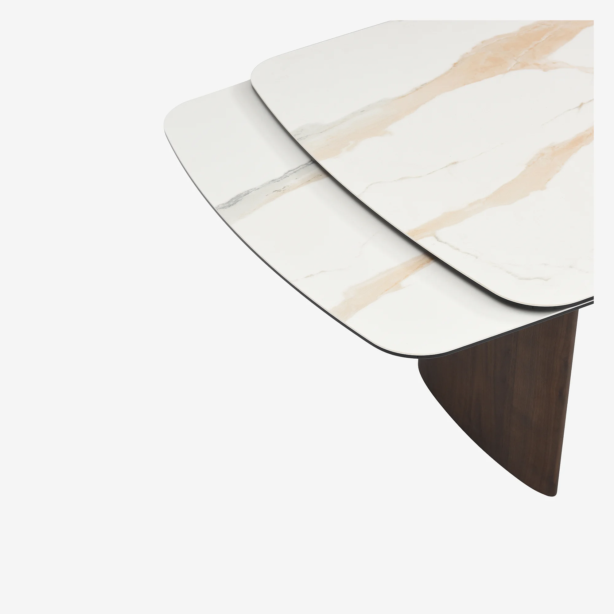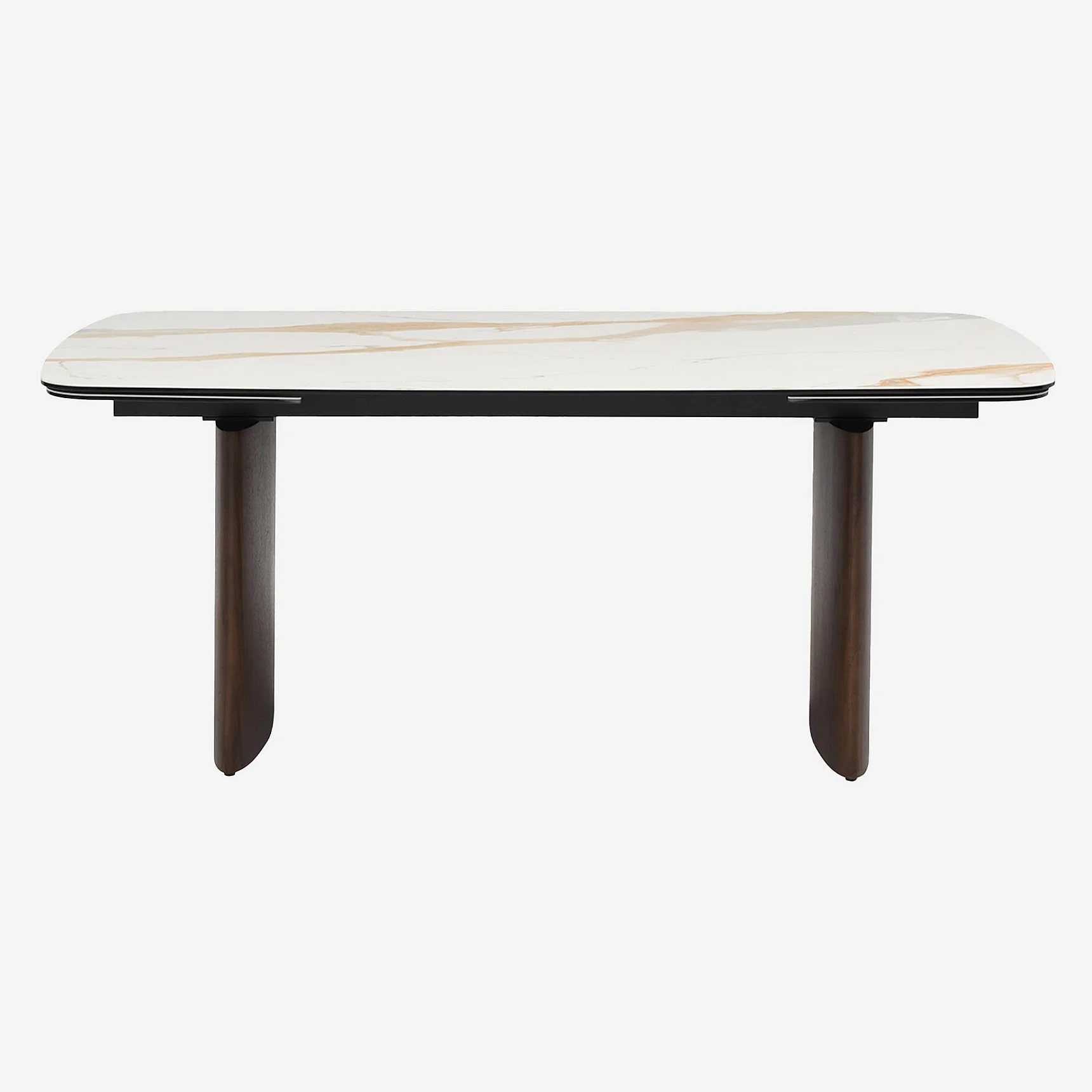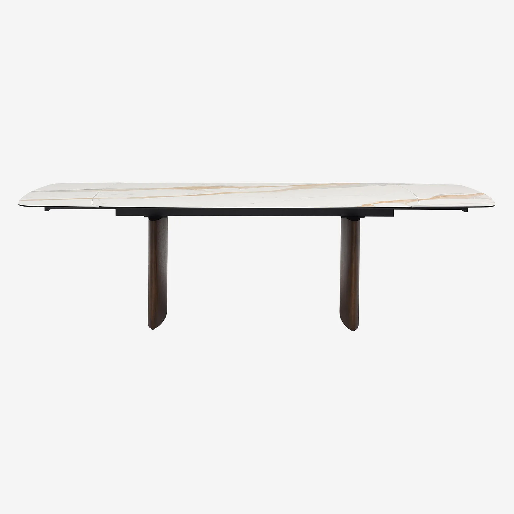 Rechthoekige uitschuifbare tafel van keramiek met walnootafwerking - Beige