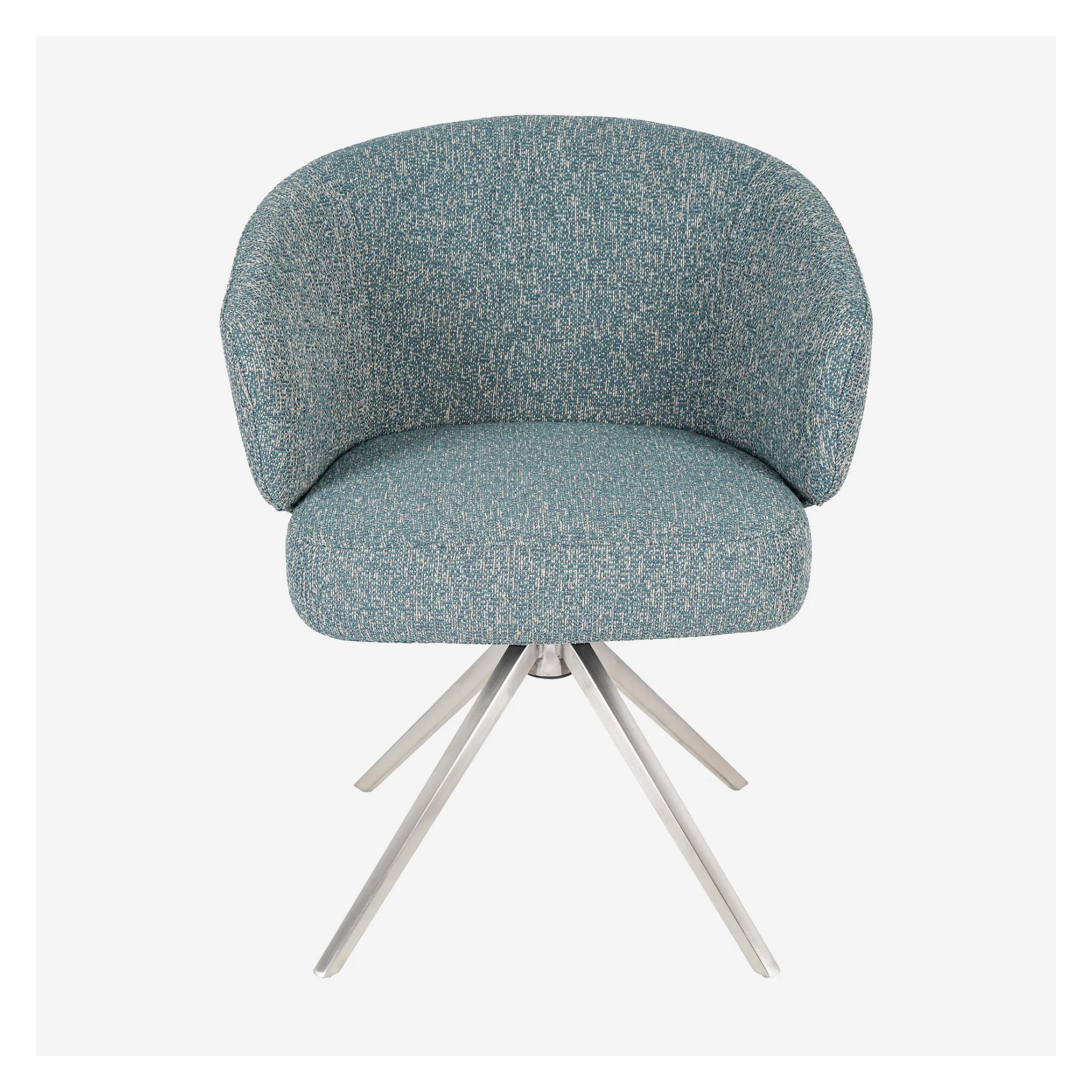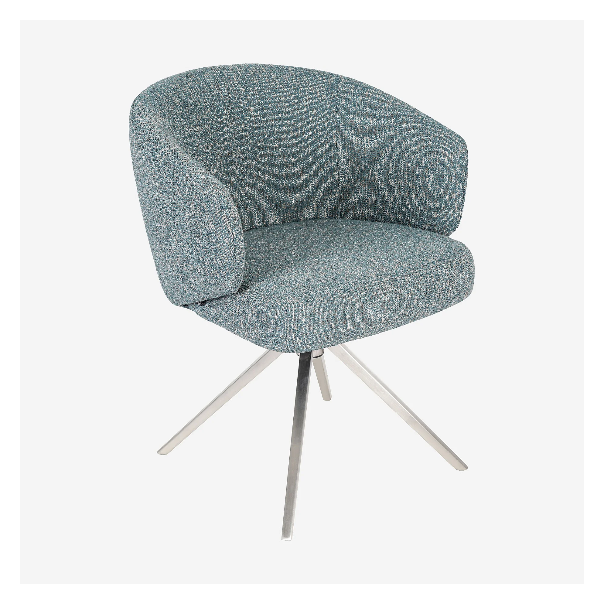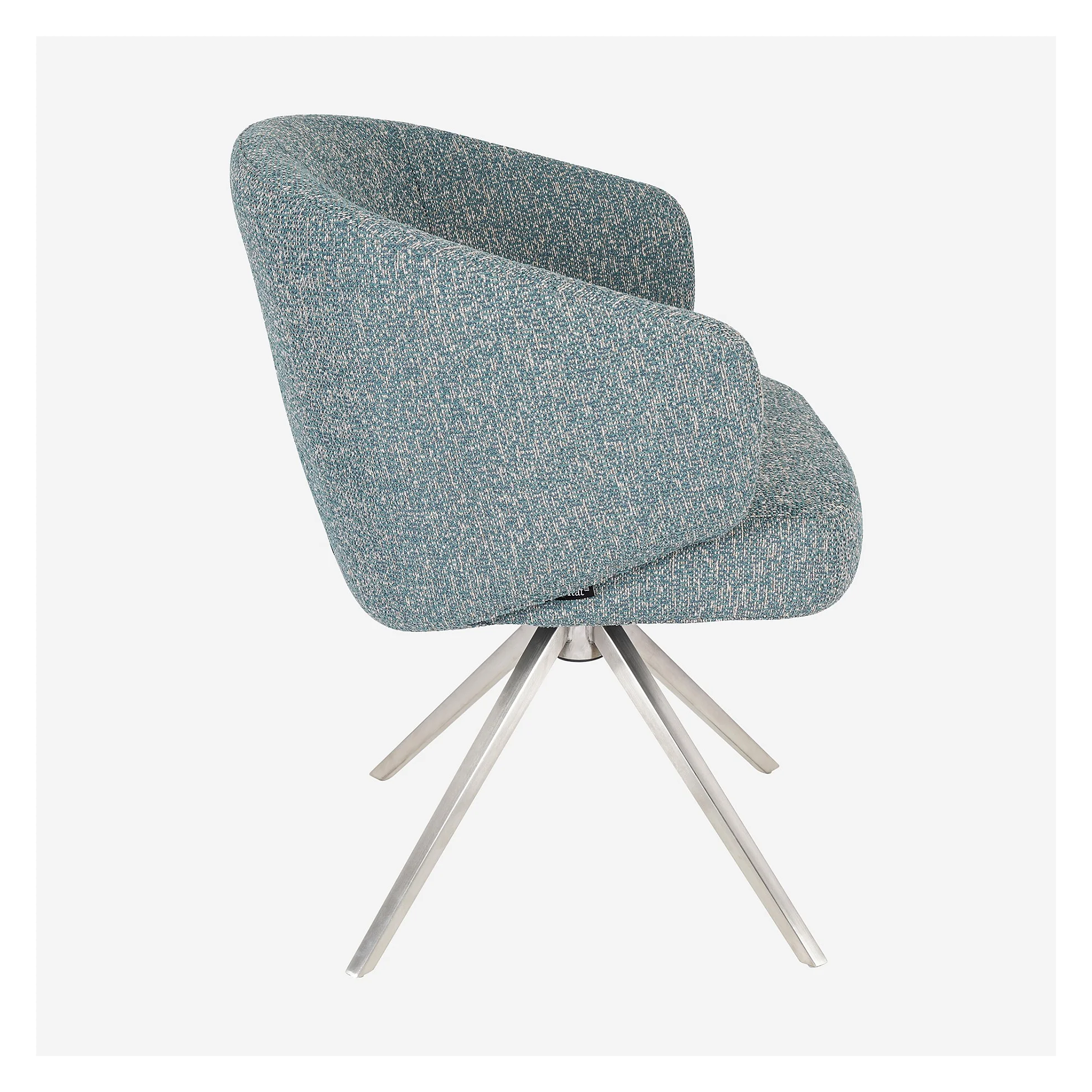 Met een omhullende vorm, textuurstof en verchroomde poten, geeft de Galati stoel een vleugje functionele moderniteit aan de woonkamer.