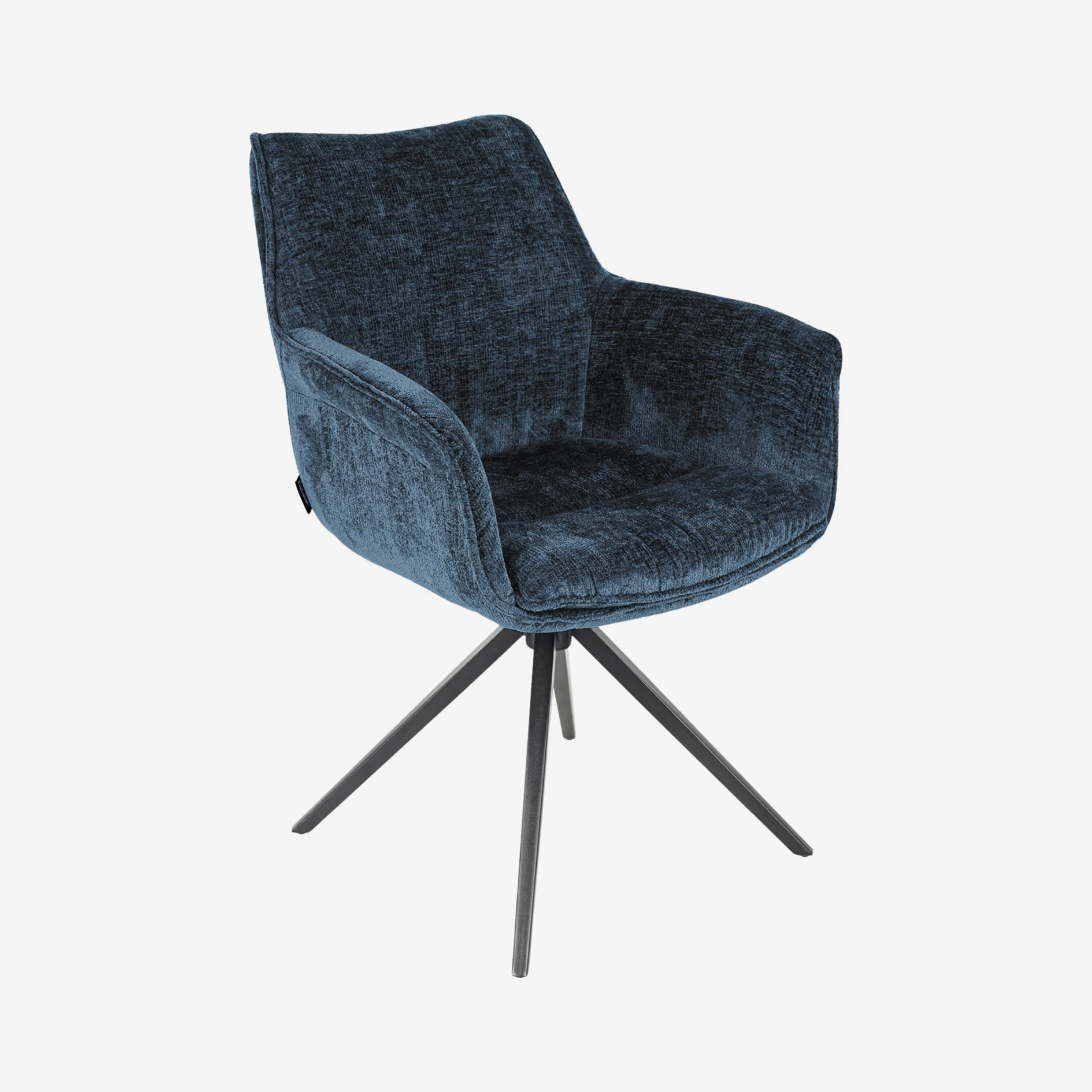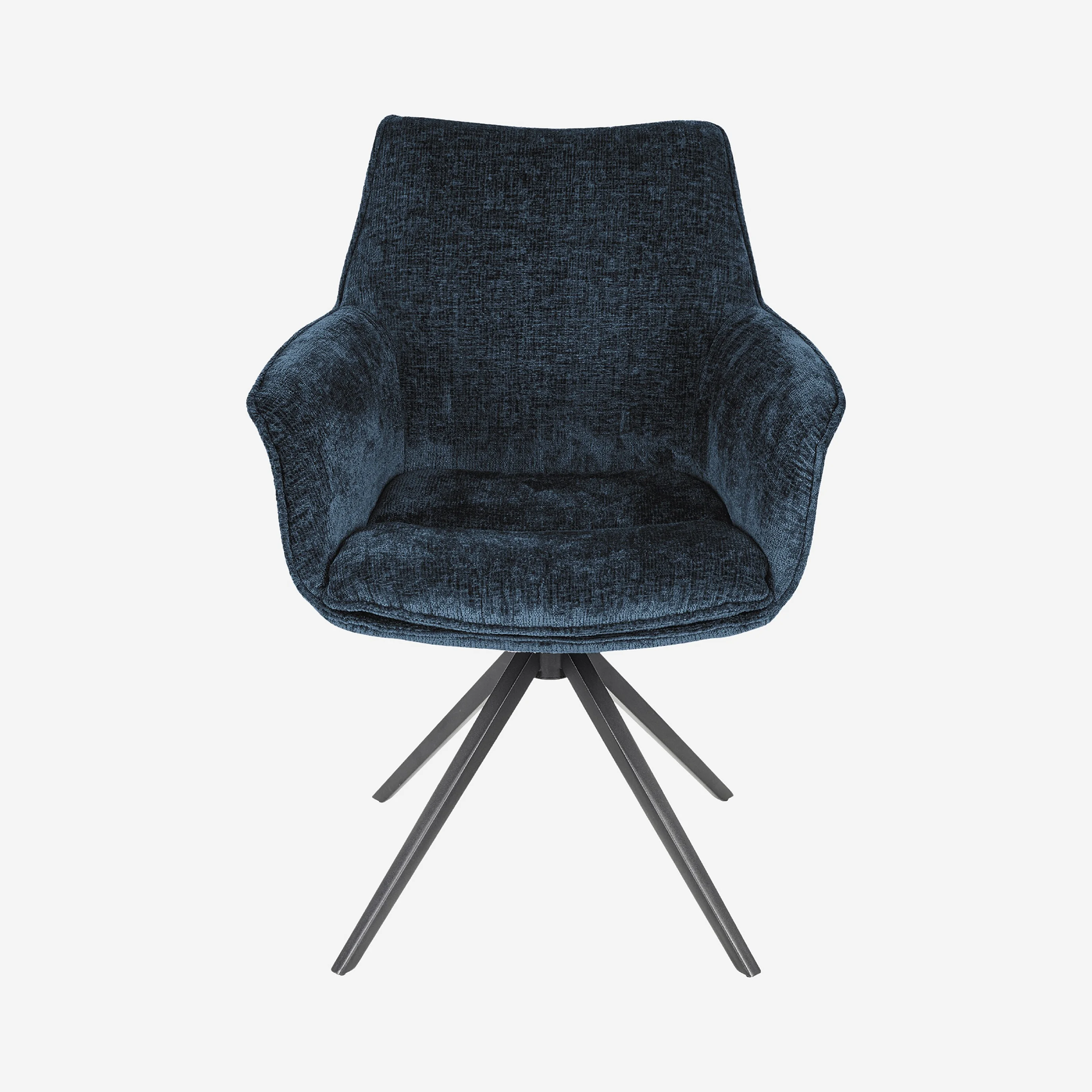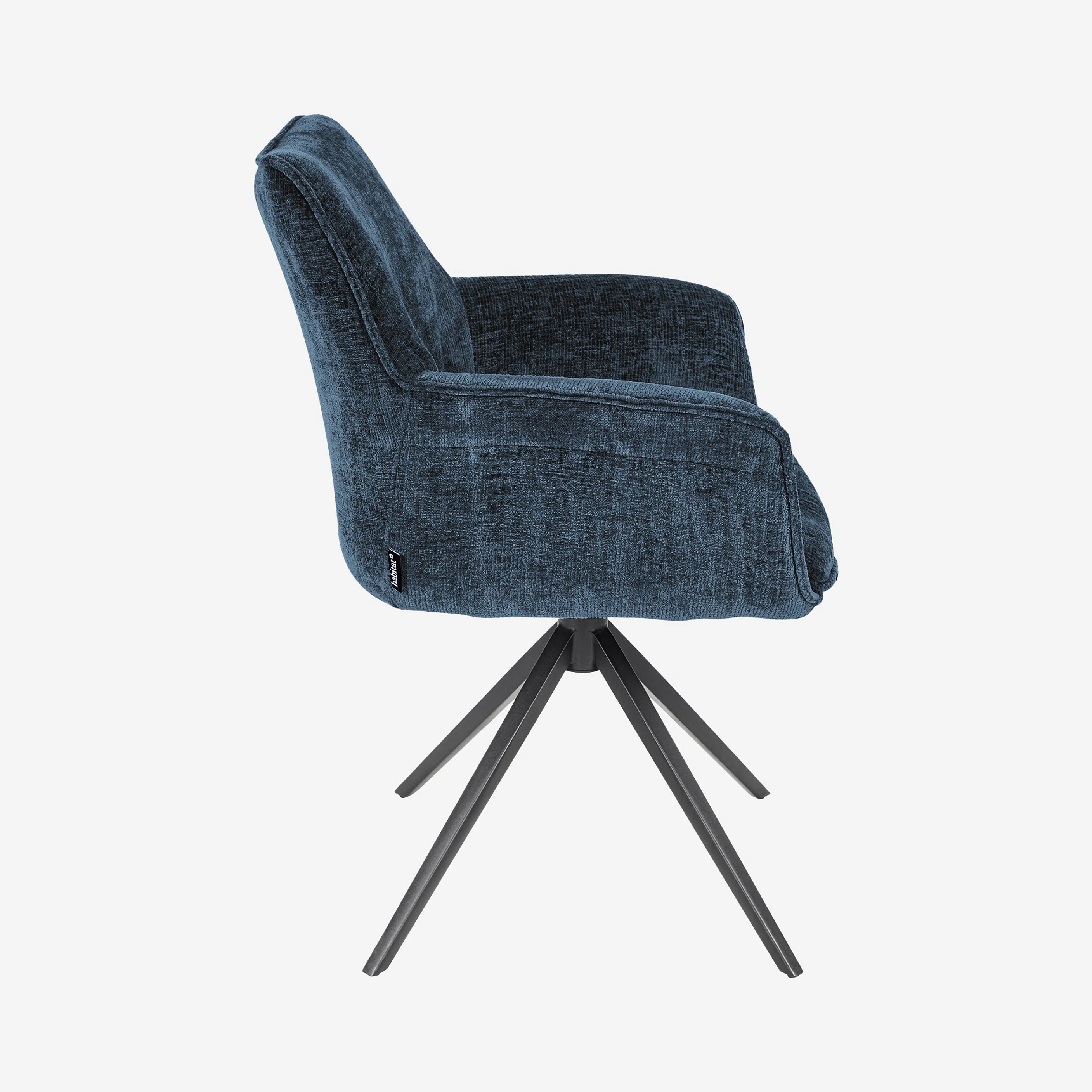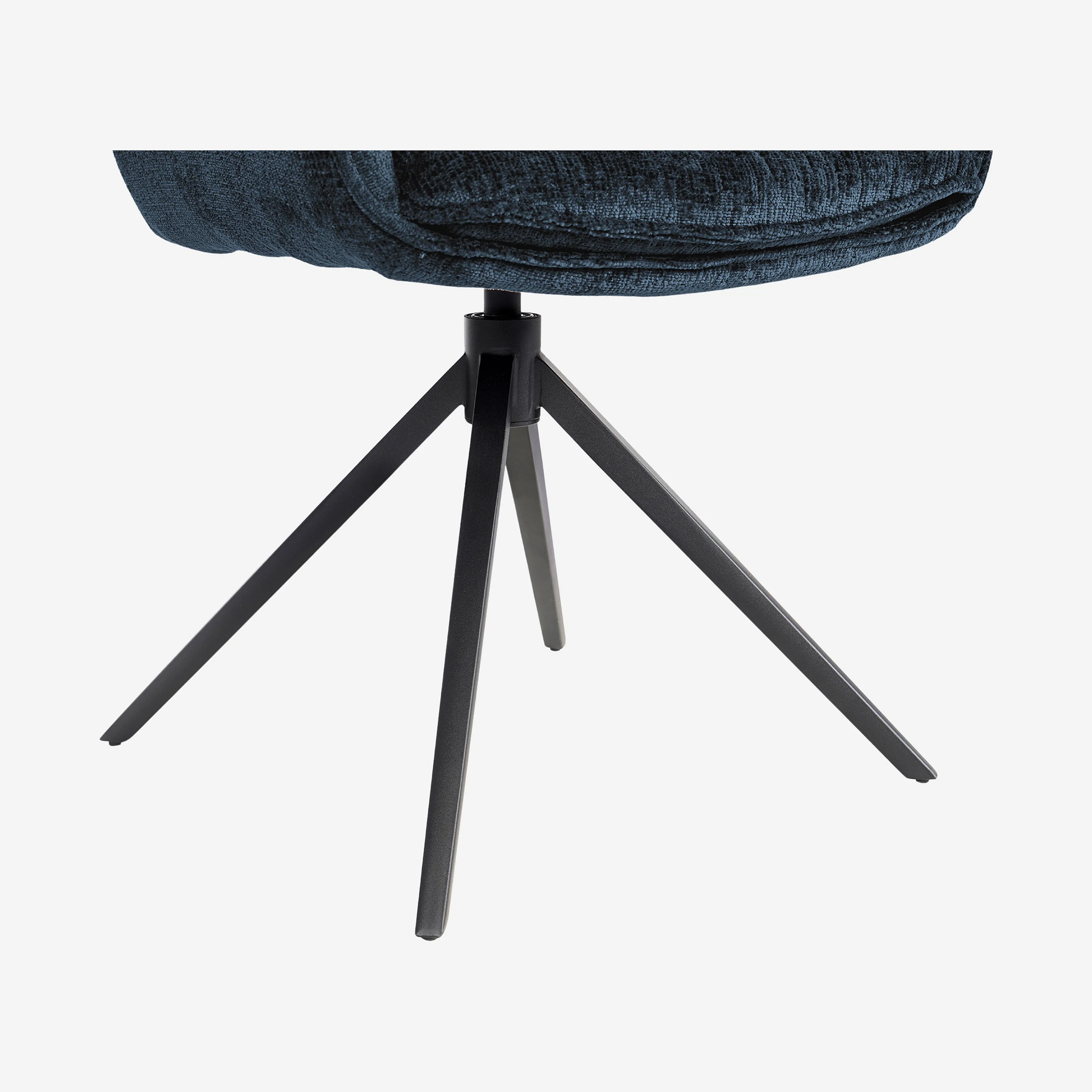 Zwenkbare stoel van fluweel en zwart metaal met armleuningen - Middernachtblauw