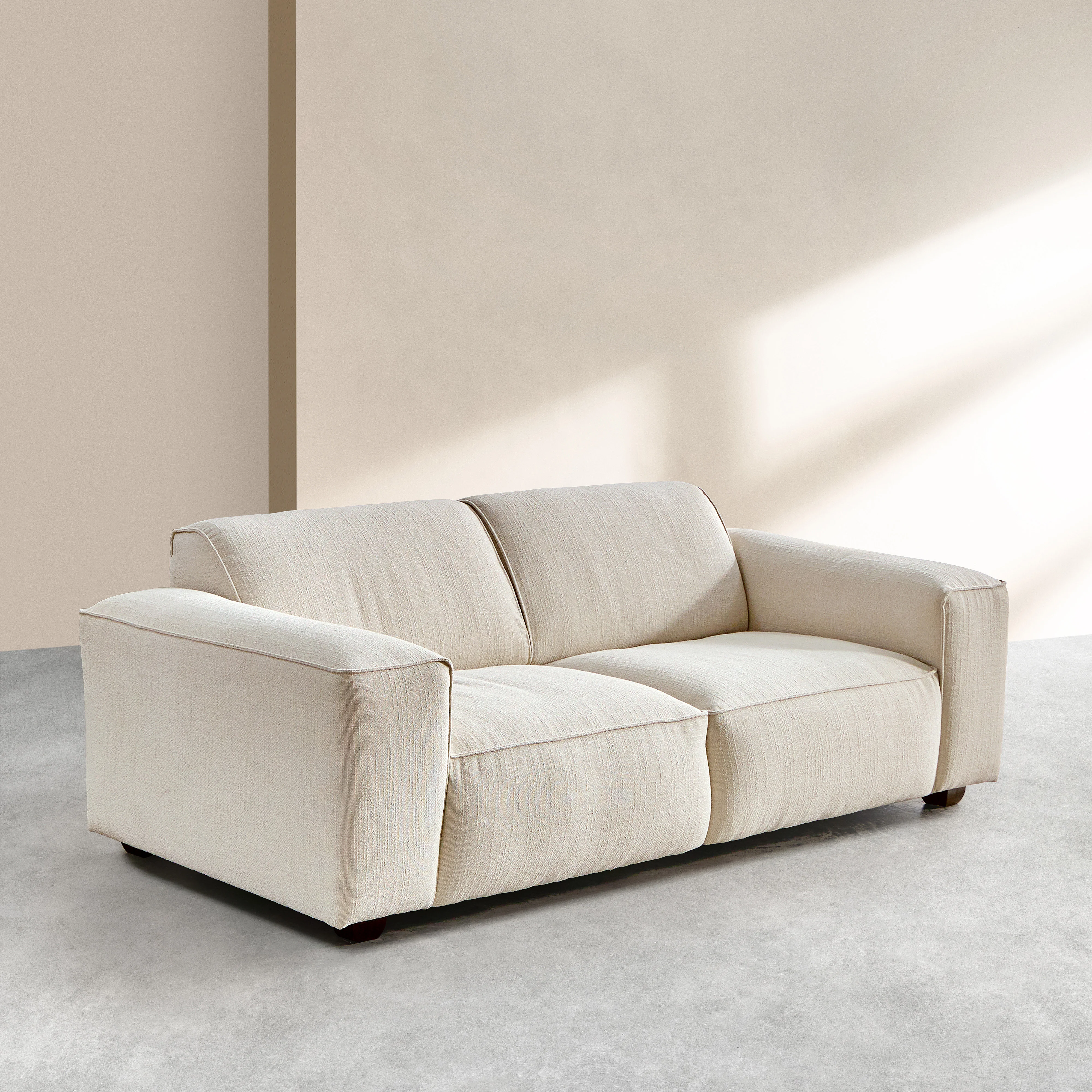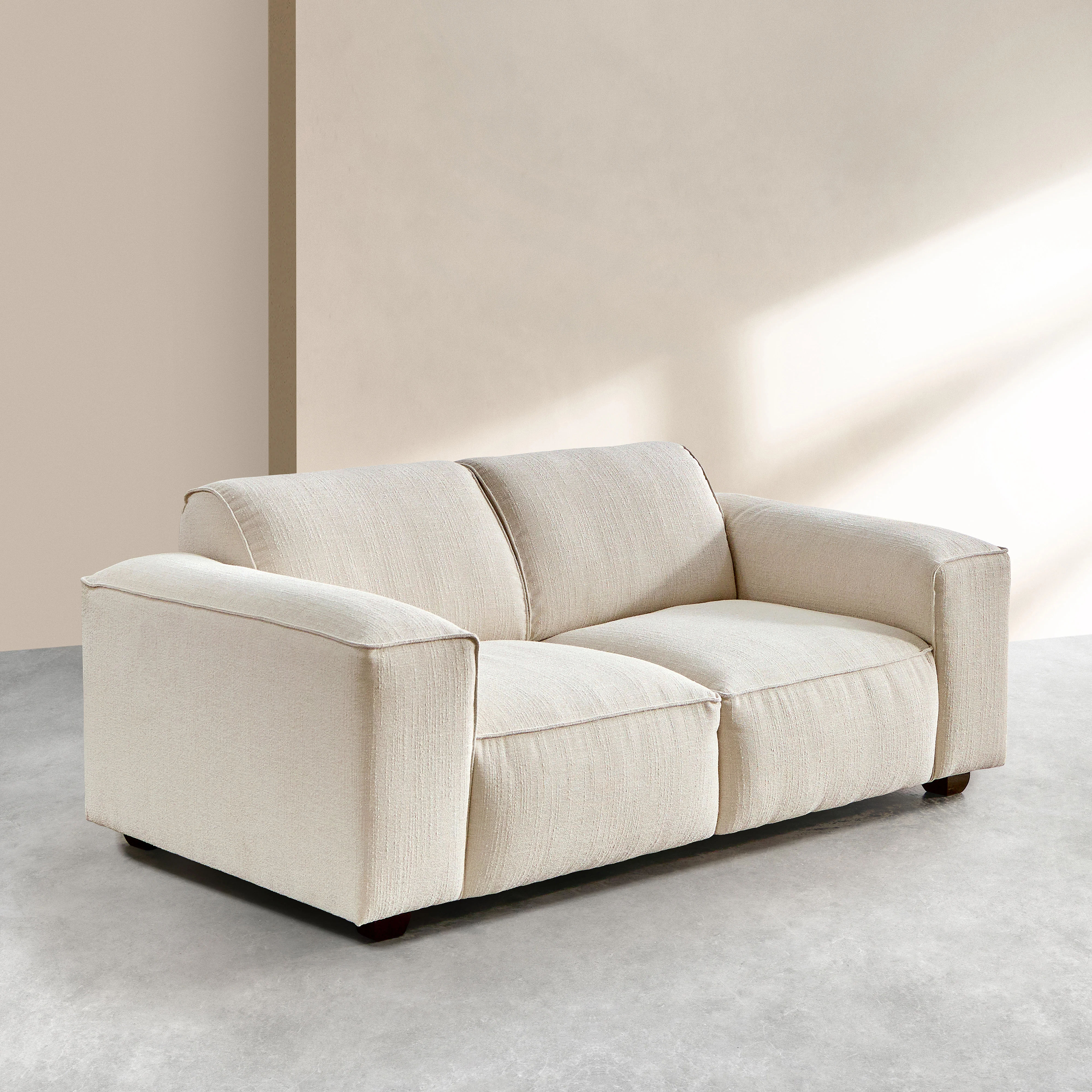 Set van 2- en 3-zitsbank van korte bouclé stof Mira - Ivoor