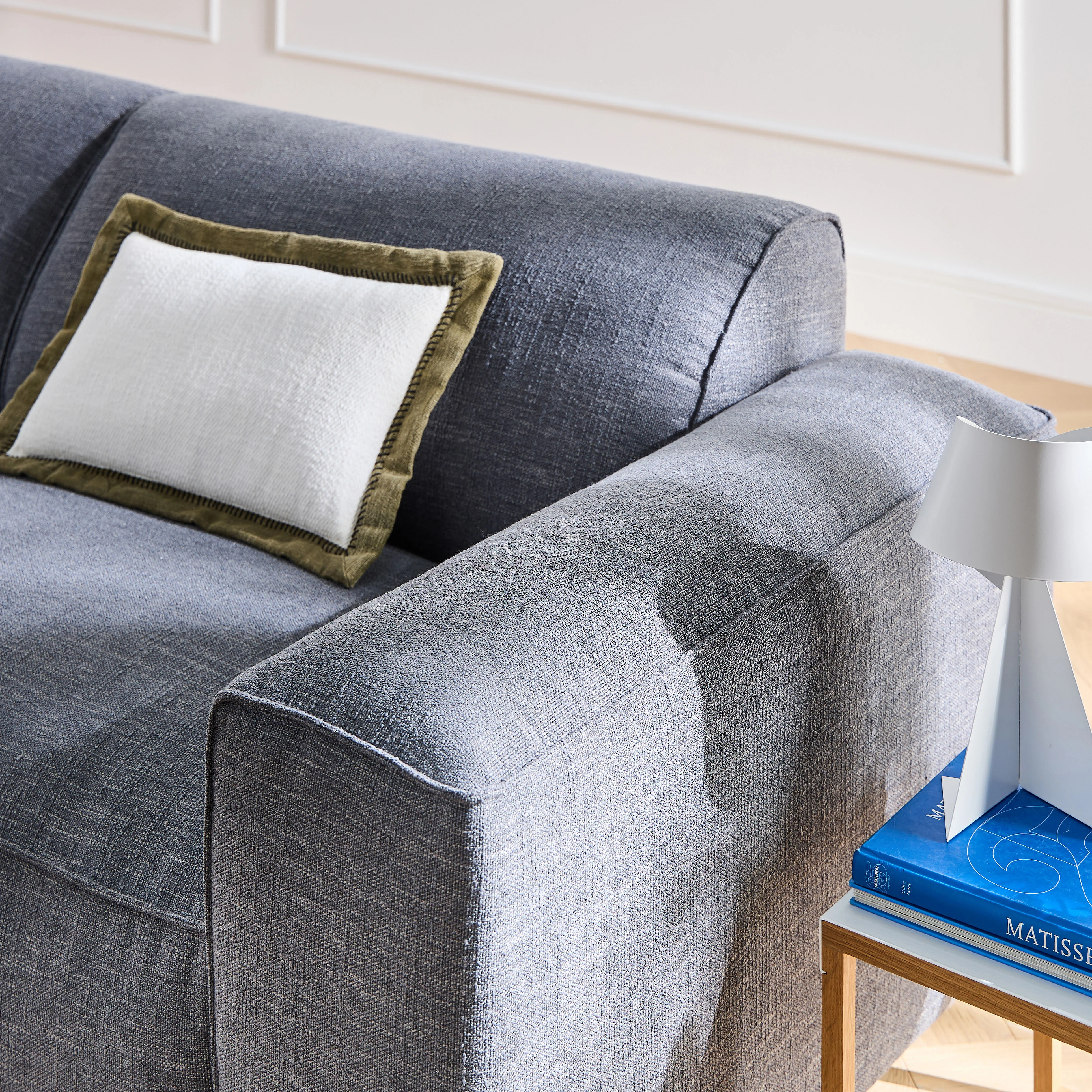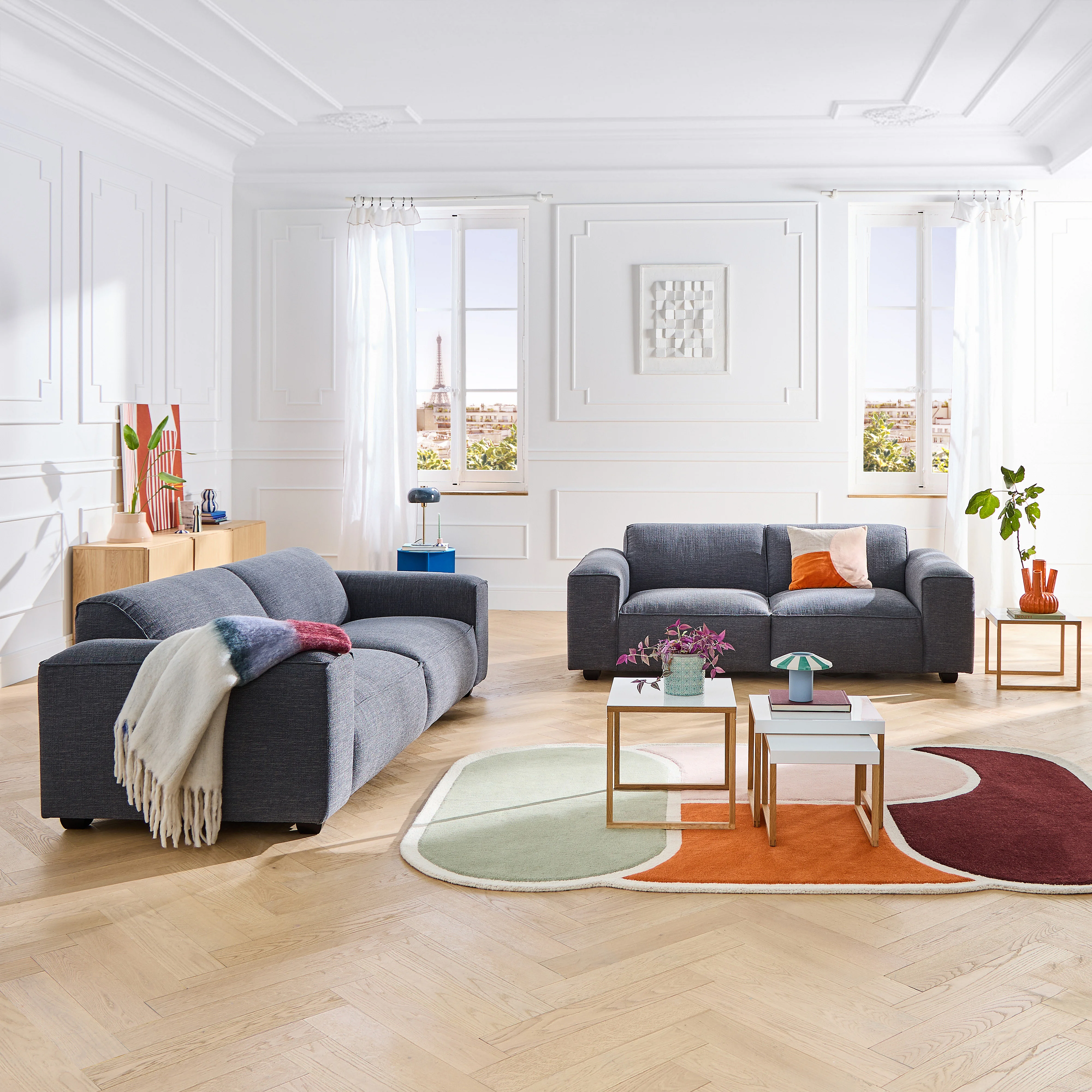 Set van 3- en 4-zitsbank van korte bouclé stof Mira - Denimblauw
