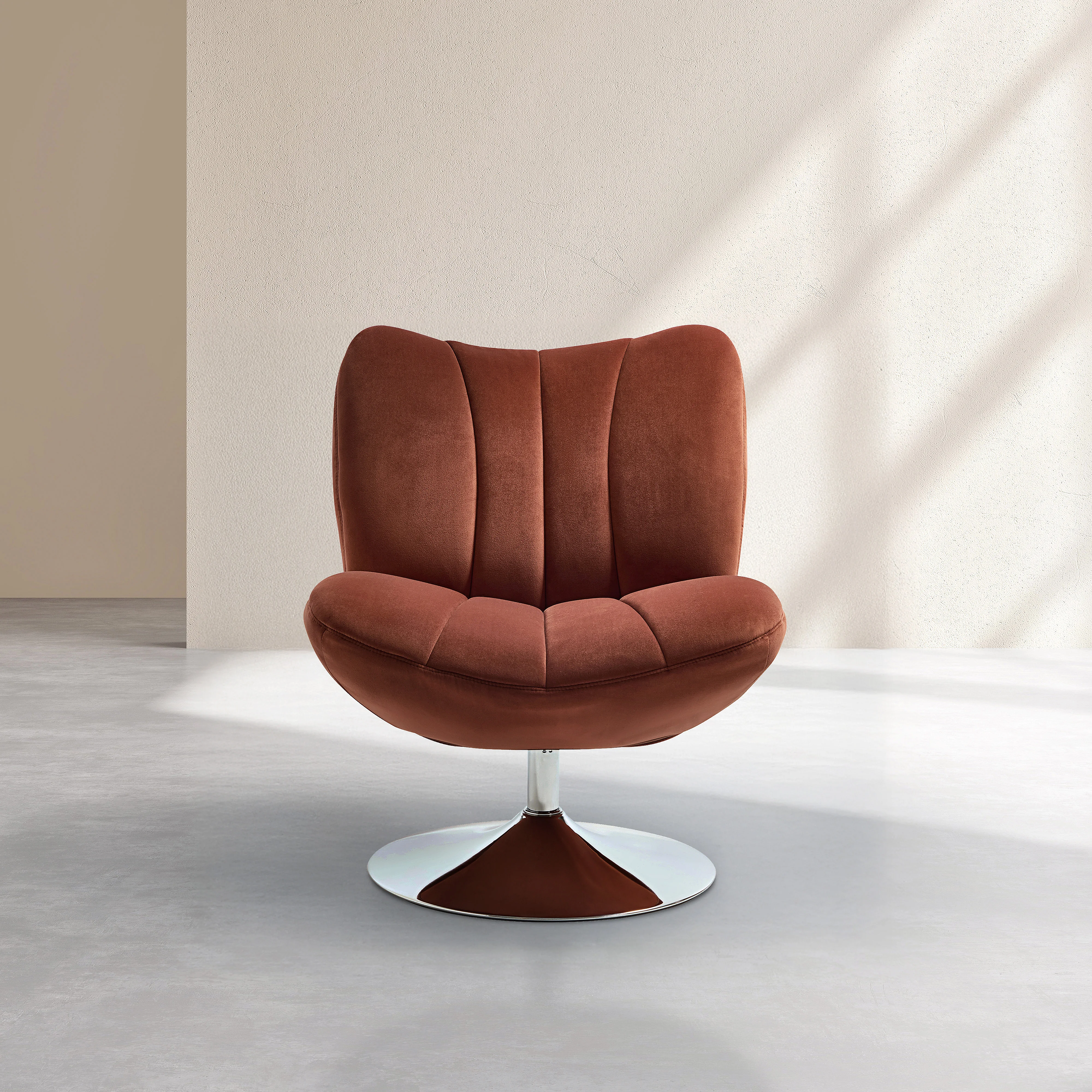 Gecapitonneerde draaifauteuil in stof en verchroomd metaal - Terracotta