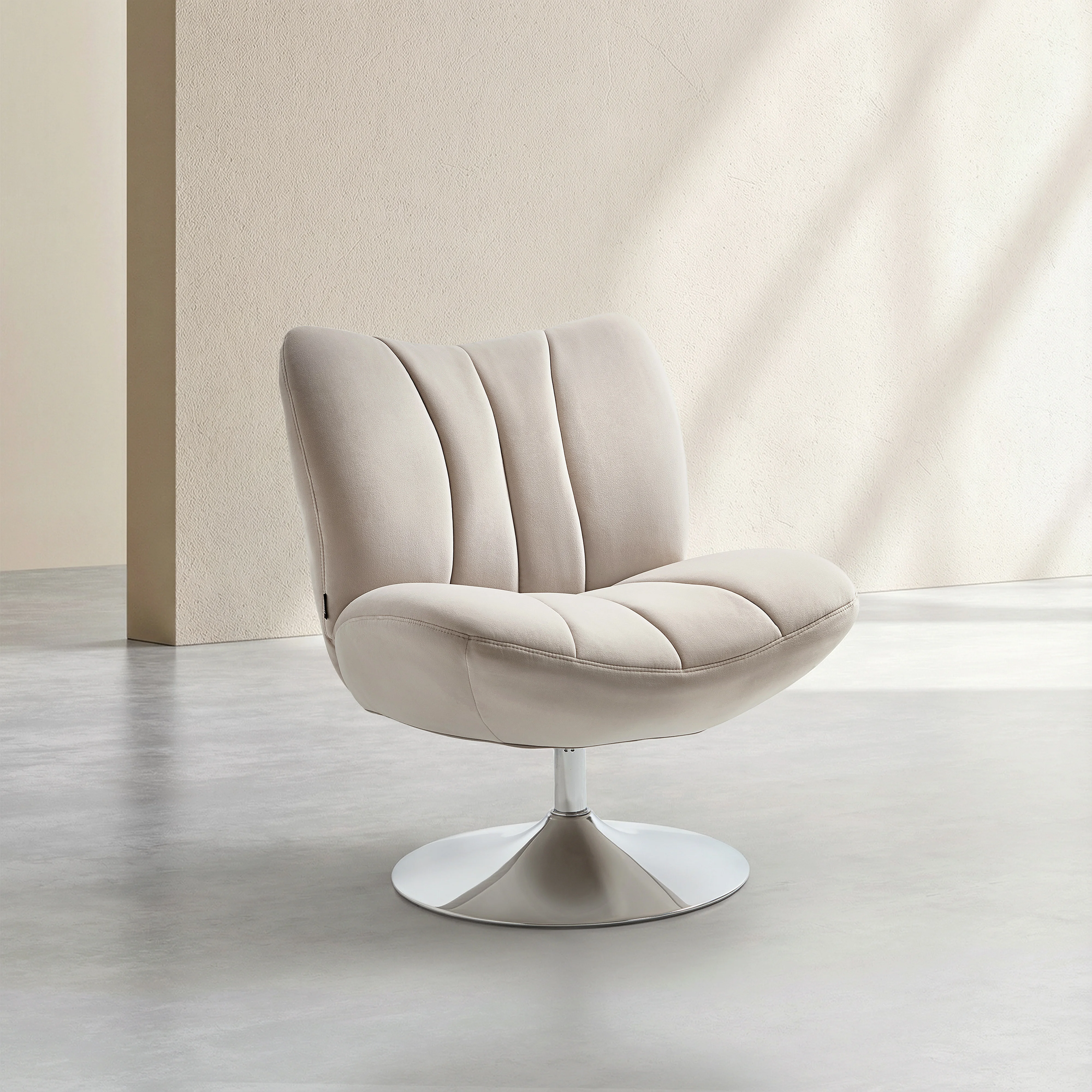 Gestoffeerde draaibare stoel in stof en verchroomd metaal - Crème
