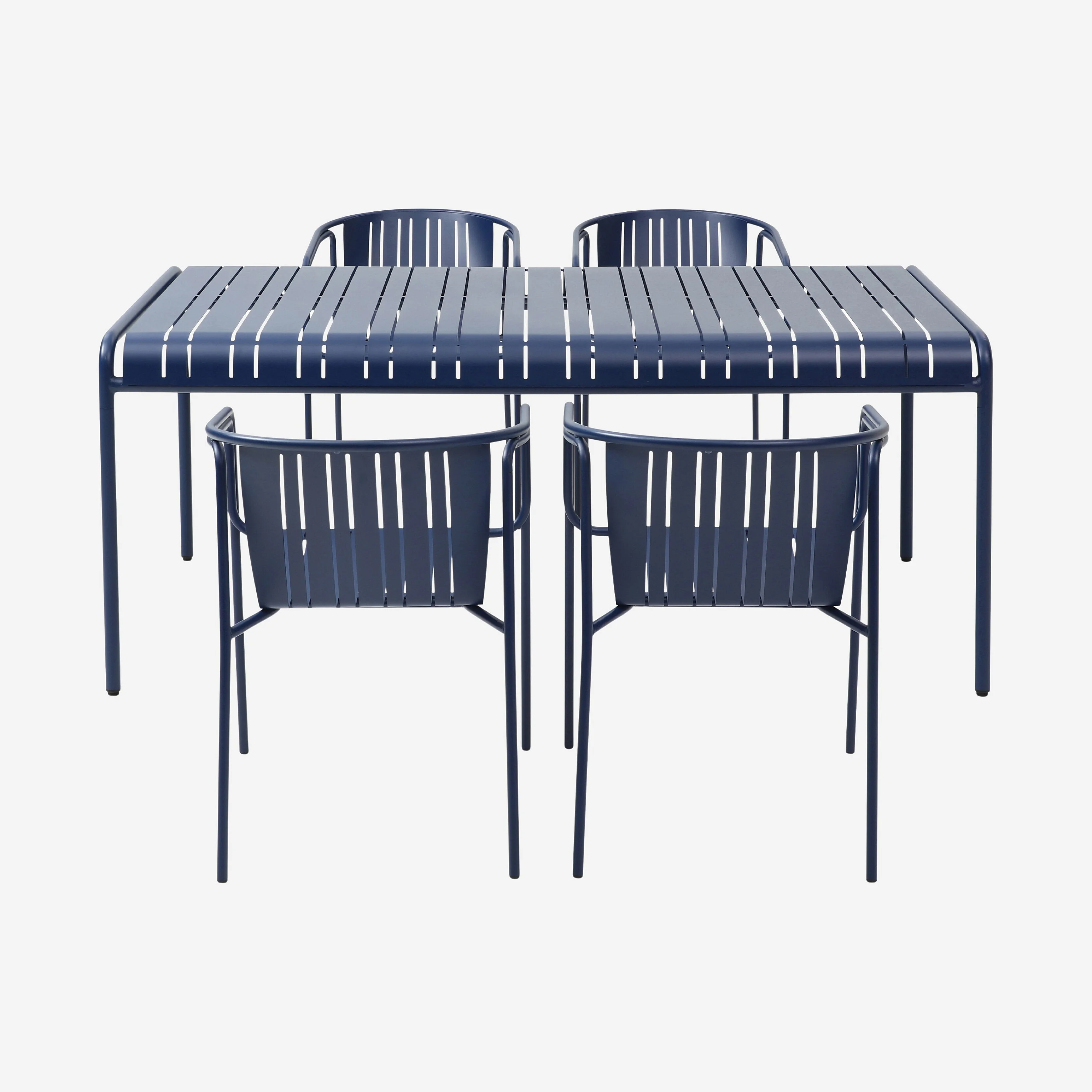 Tuintafel 180 x 100 cm met 4 tuinstoelen met armleuningen - Nachtblauw