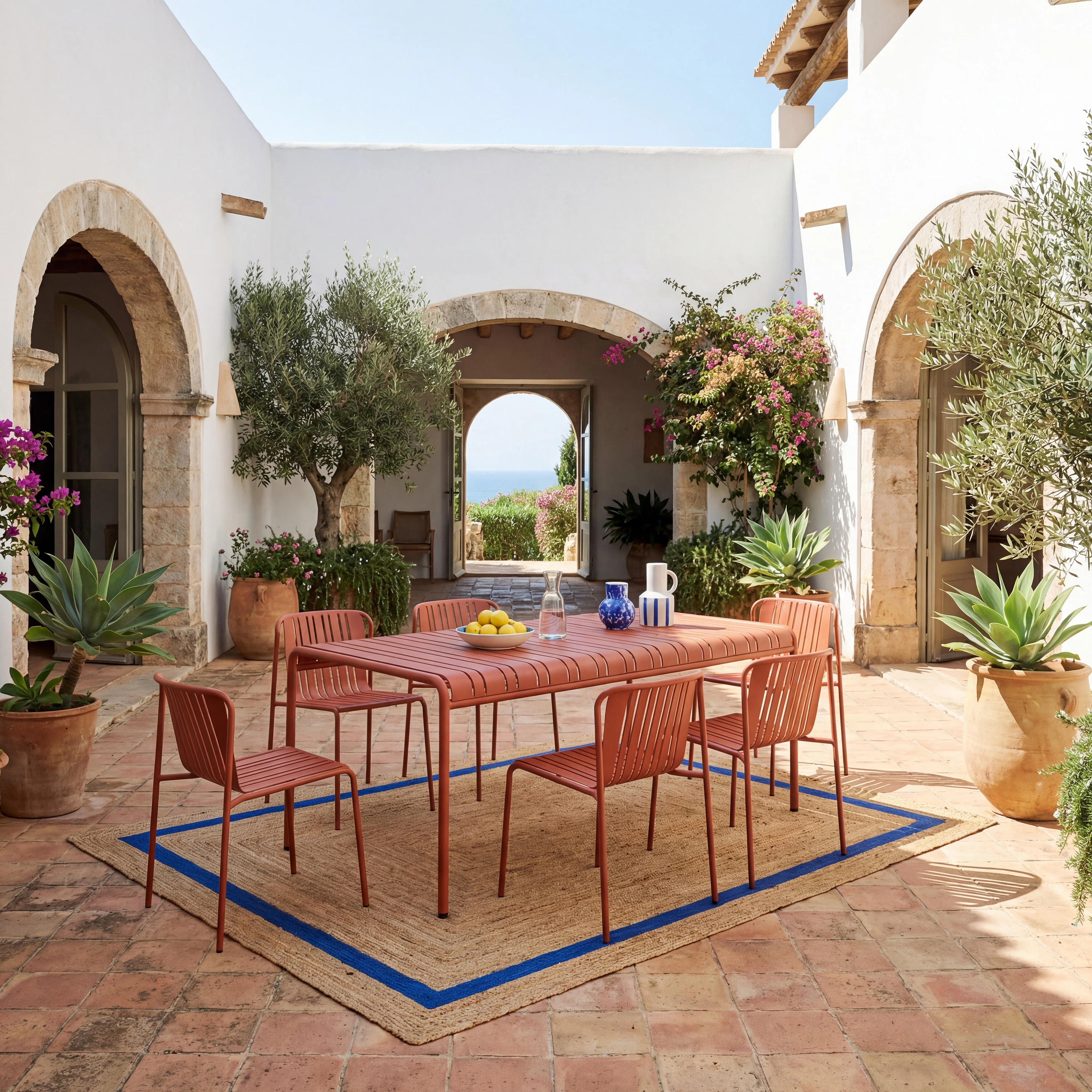 Azur verfraait je buitenruimtes op natuurlijke wijze. Perfect voor het creëren van een harmonieuze eetruimte in de open lucht door alle seizoenen heen, nodigt het uit tot momenten van samenzijn en gezelligheid.