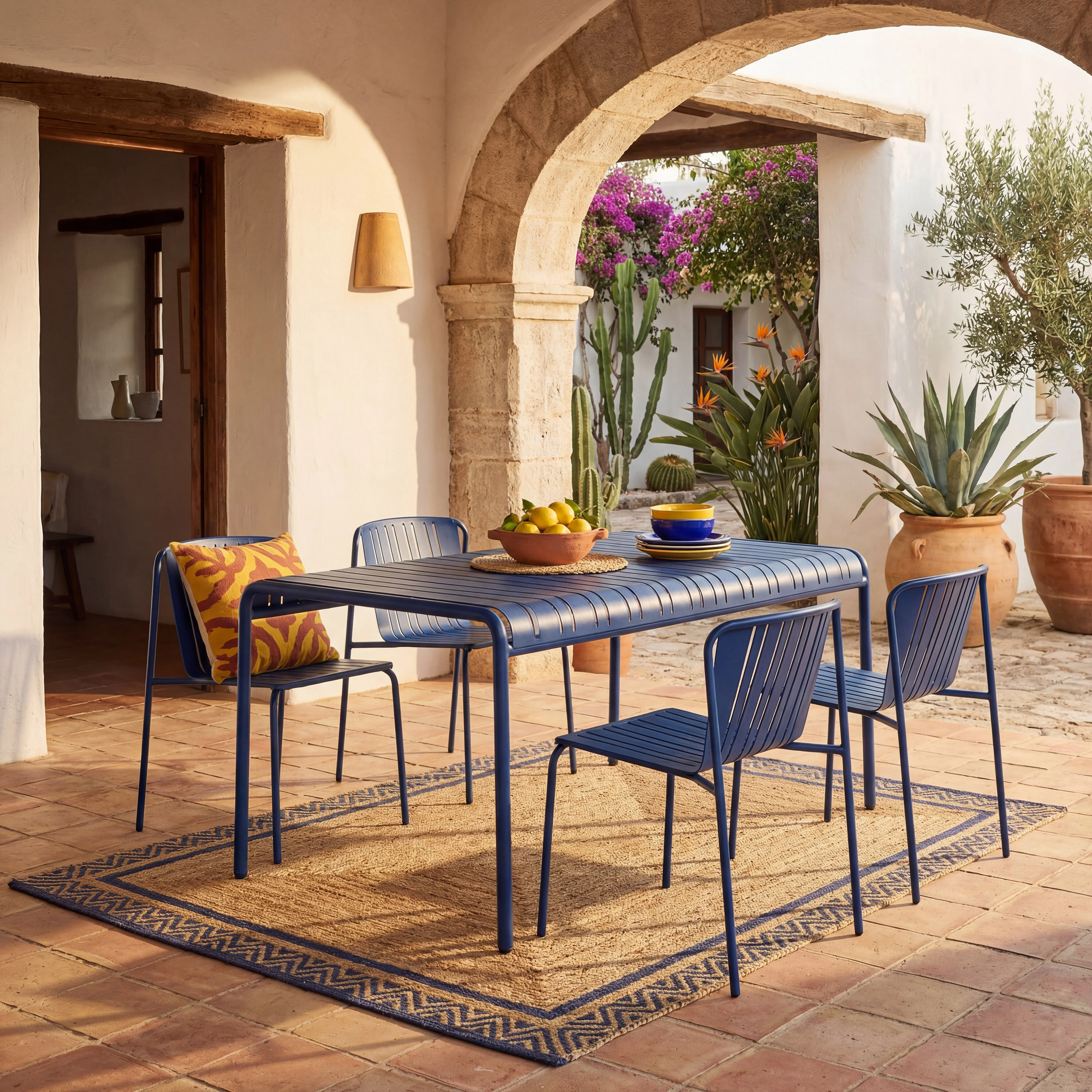 Azur verfraait je buitenruimtes op natuurlijke wijze. Perfect voor het creëren van een harmonieuze eetruimte in de open lucht door alle seizoenen heen, nodigt het uit tot momenten van samenzijn en gezelligheid.