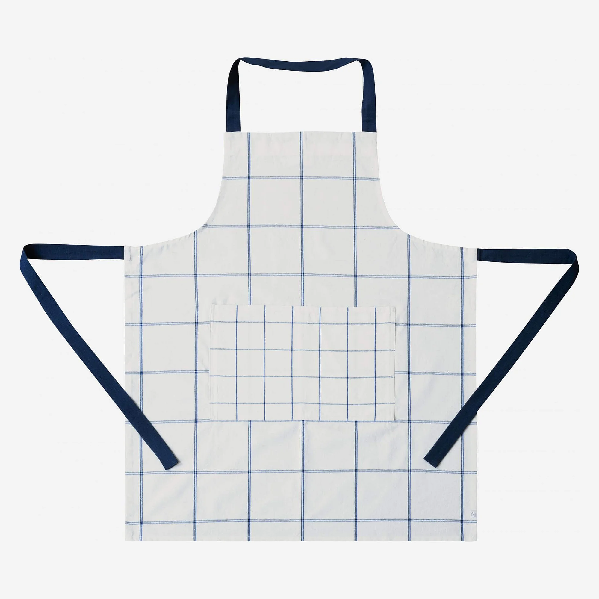 Katoenen schort - Wit met blauwe ruitjes
