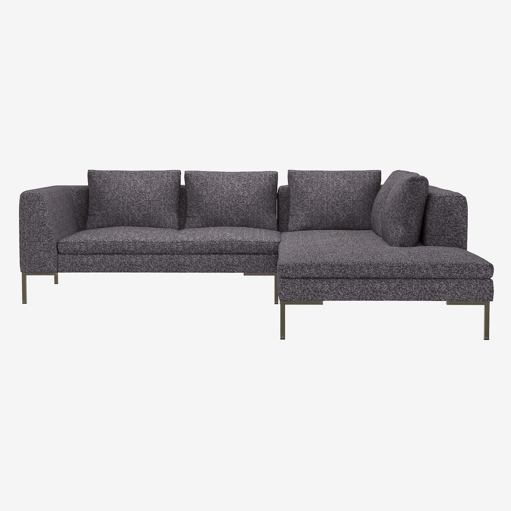 Strakke lijnen en een zachte zitting vormen deze hoekbank met grafische uitstraling. Geïnspireerd door de New Yorkse loftstijl, presenteert hij zich als een sobere en hedendaagse meubelstuk.