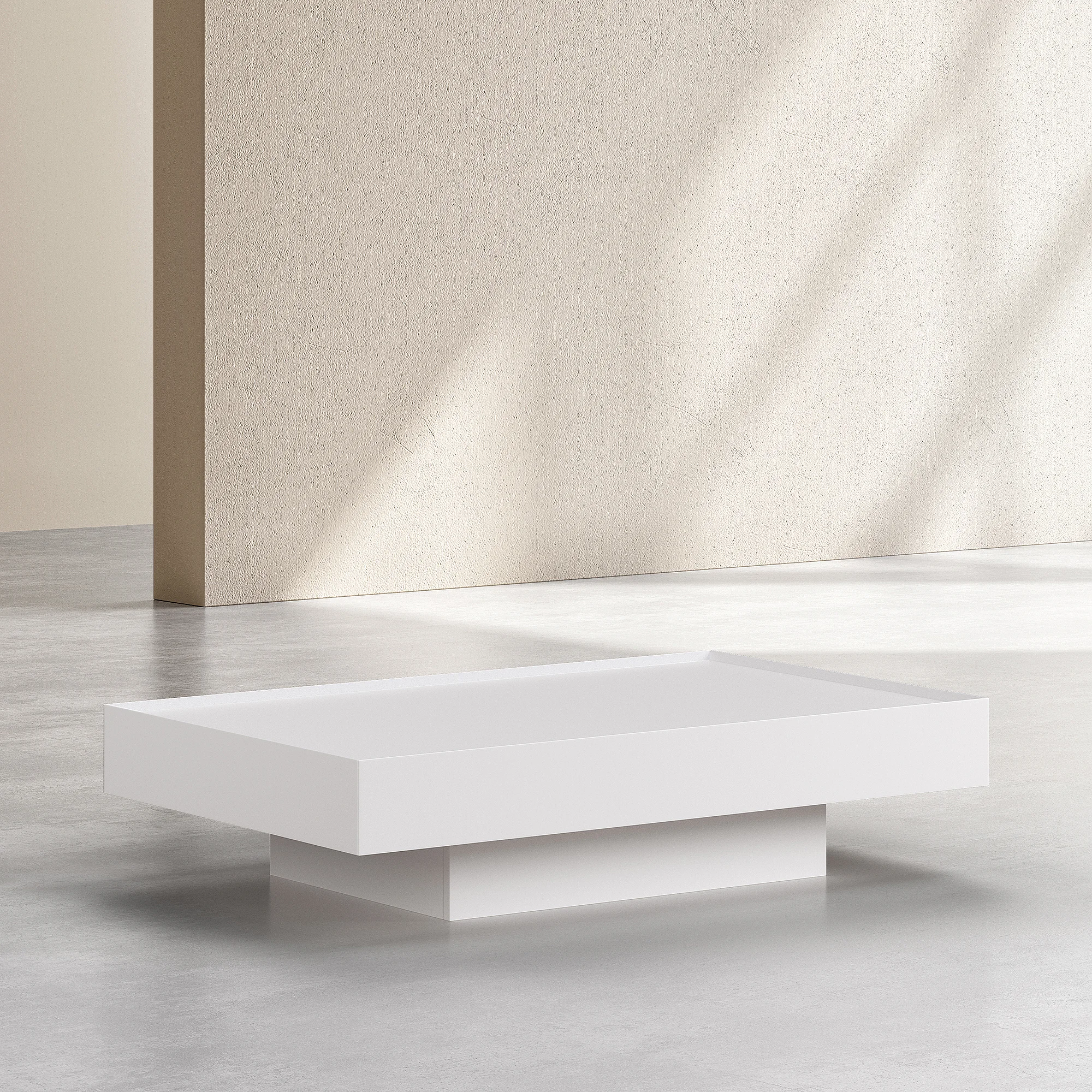 Design depurado, tampo estruturado e gaveta escondida compõem uma mesa de centro funcional e elegante. Uma peça sóbria que encontra naturalmente seu lugar em uma sala organizada e contemporânea.