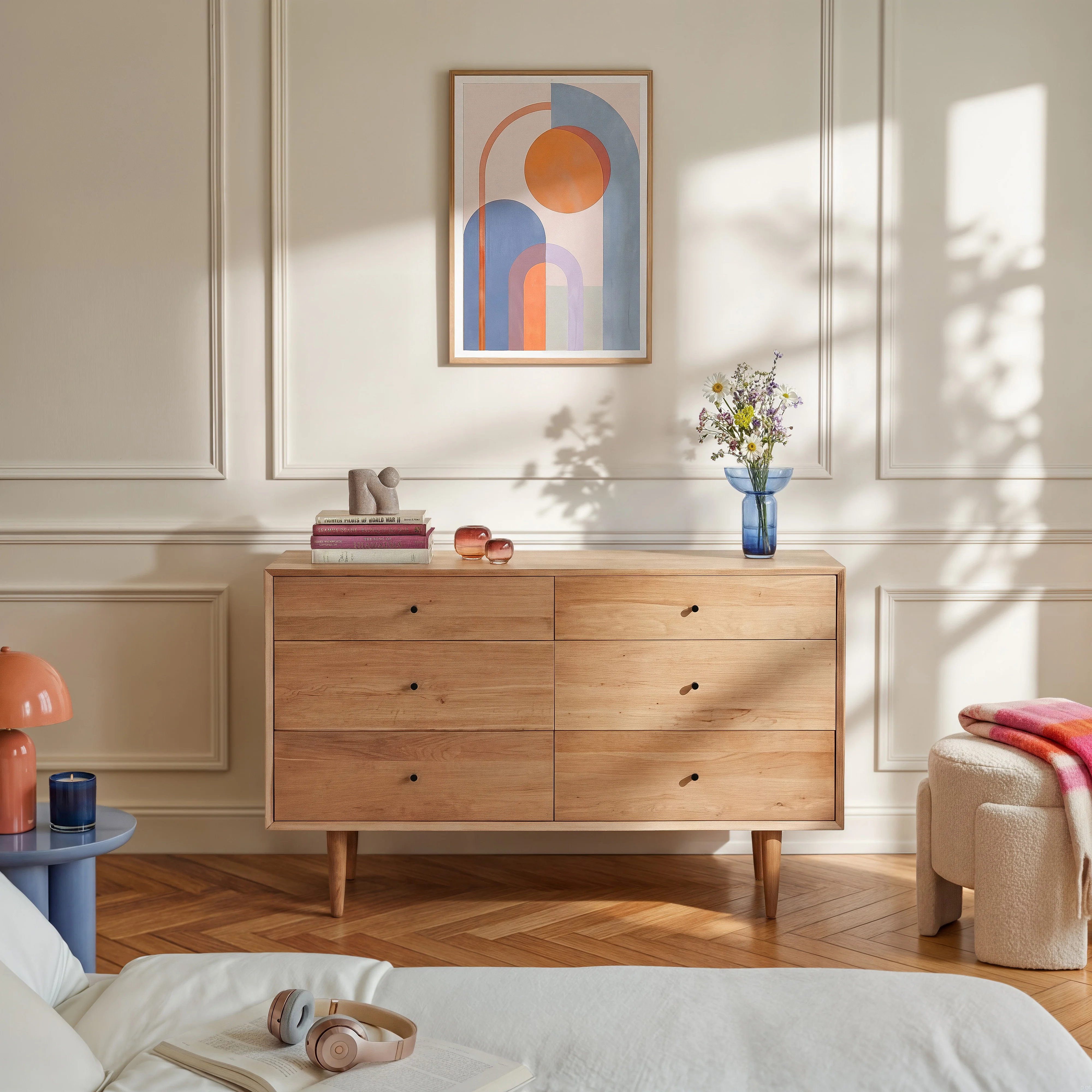 Cômoda 6 gavetas em carvalho maciço - Natural
