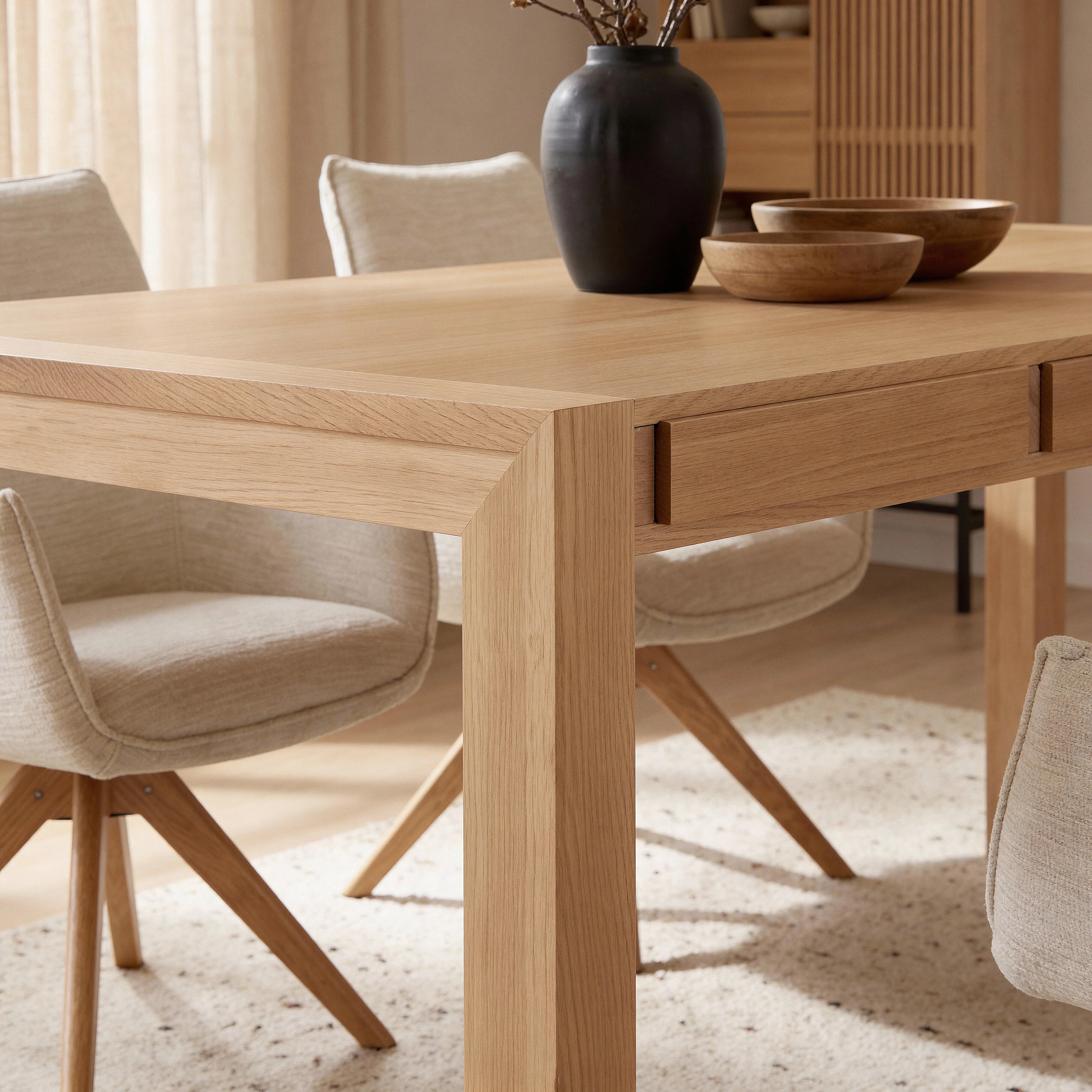 Mesa de sala de jantar em madeira de carvalho