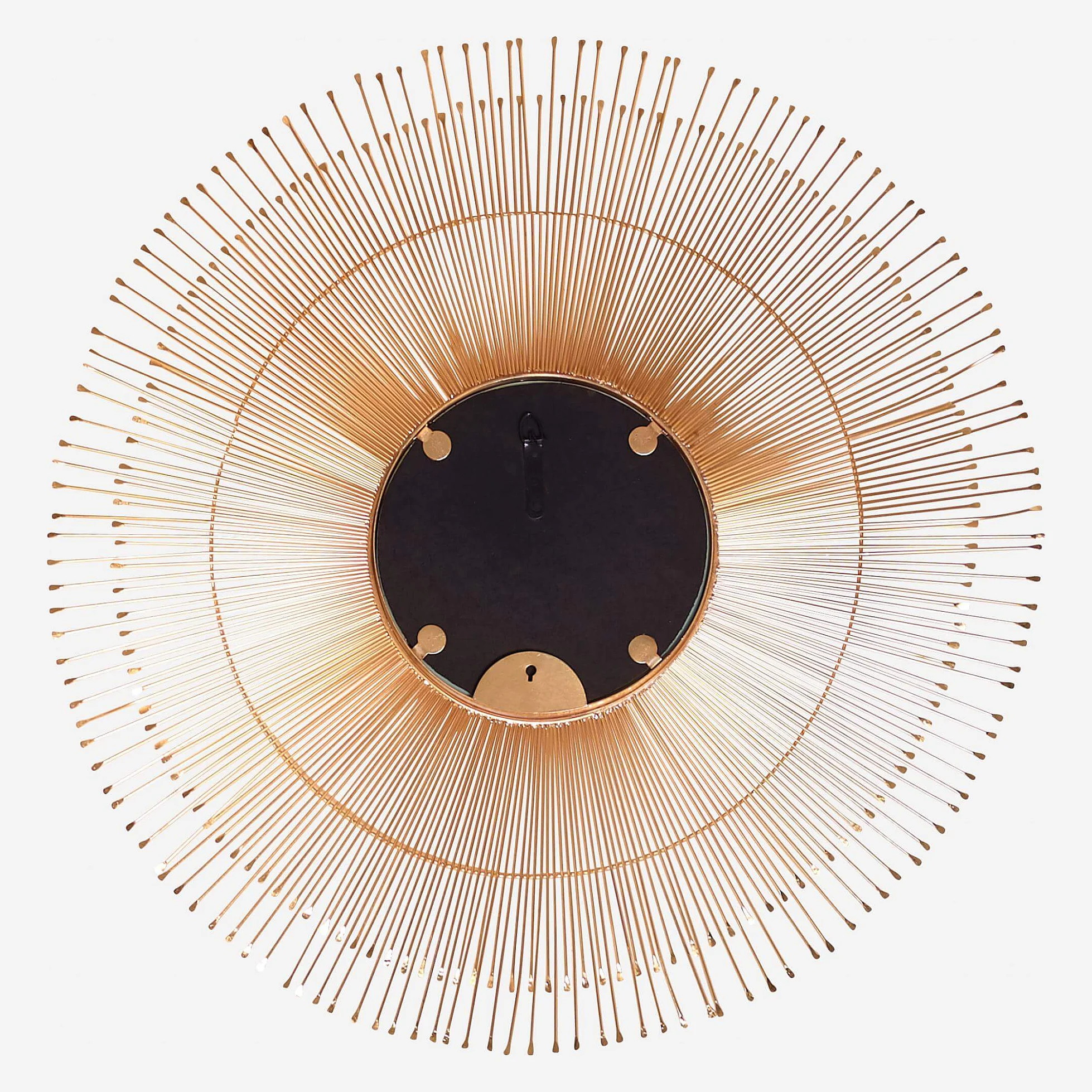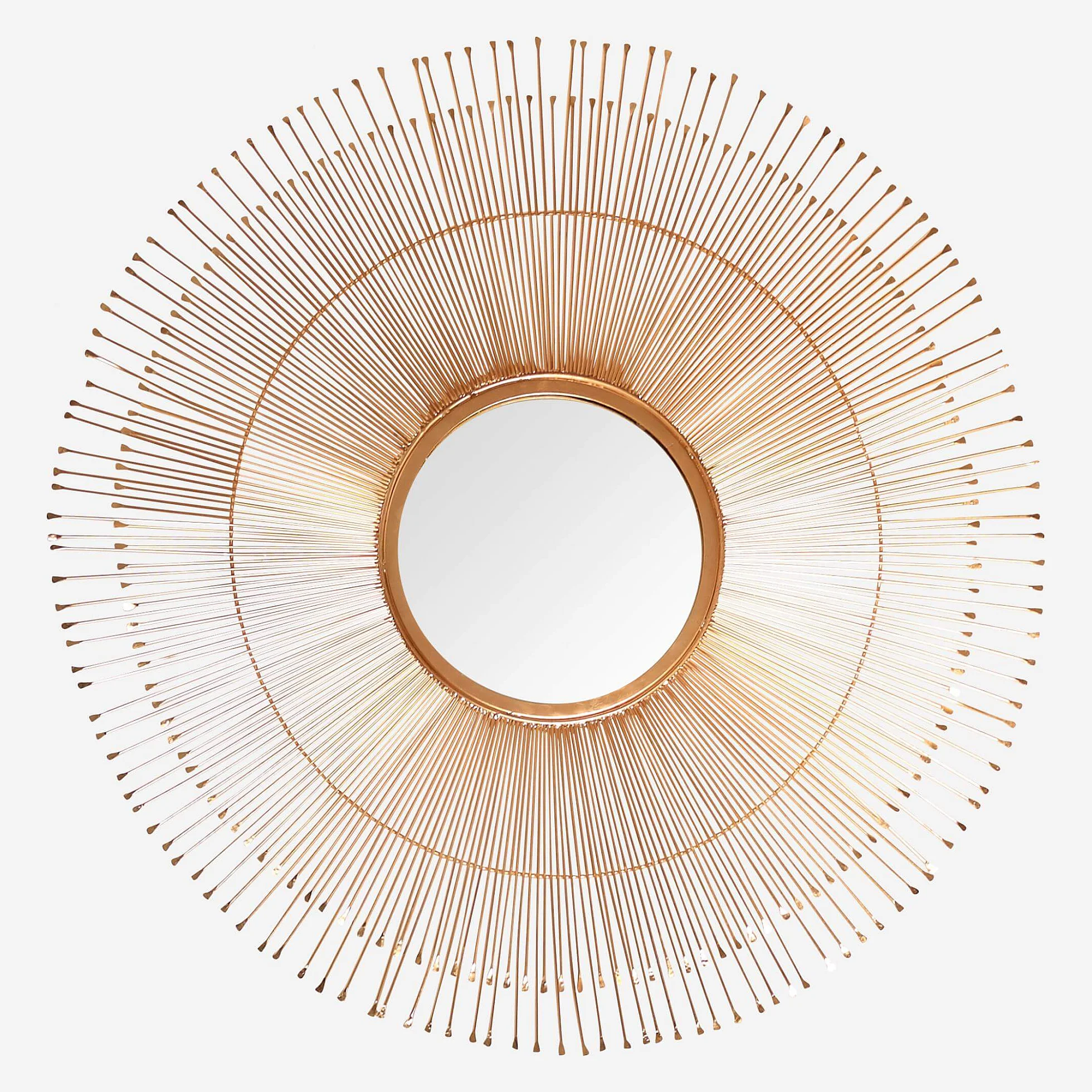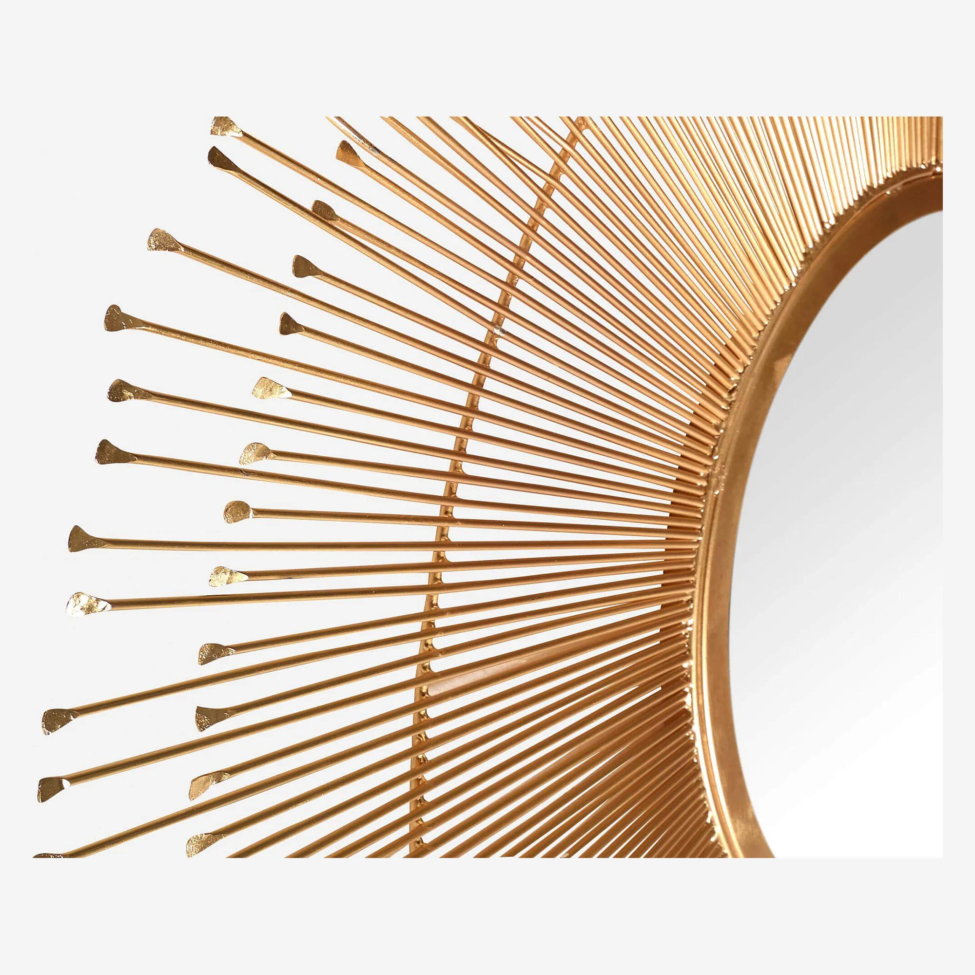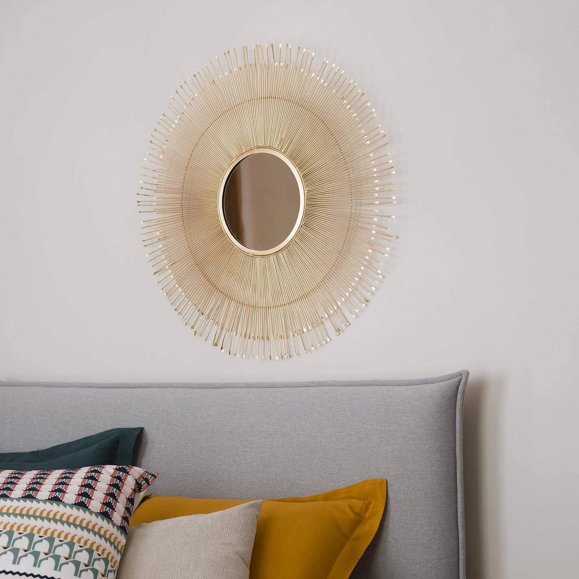 O espelho redondo Olga em ferro dourado, de inspiração Art Déco, ilumina as suas paredes com seus raios elegantes e traz um toque solar ao seu interior.
