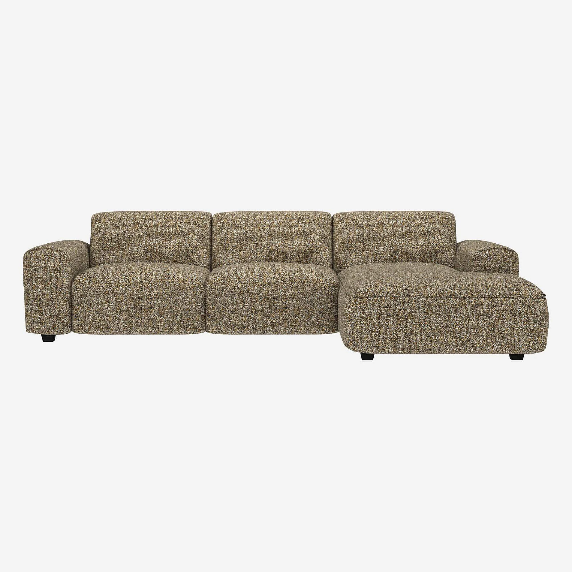 Formas arredondadas e costuras cuidadosas definem este sofá de canto com conforto envolvente. Uma peça elegante e generosa, perfeita para estruturar uma sala de estar com suavidade.