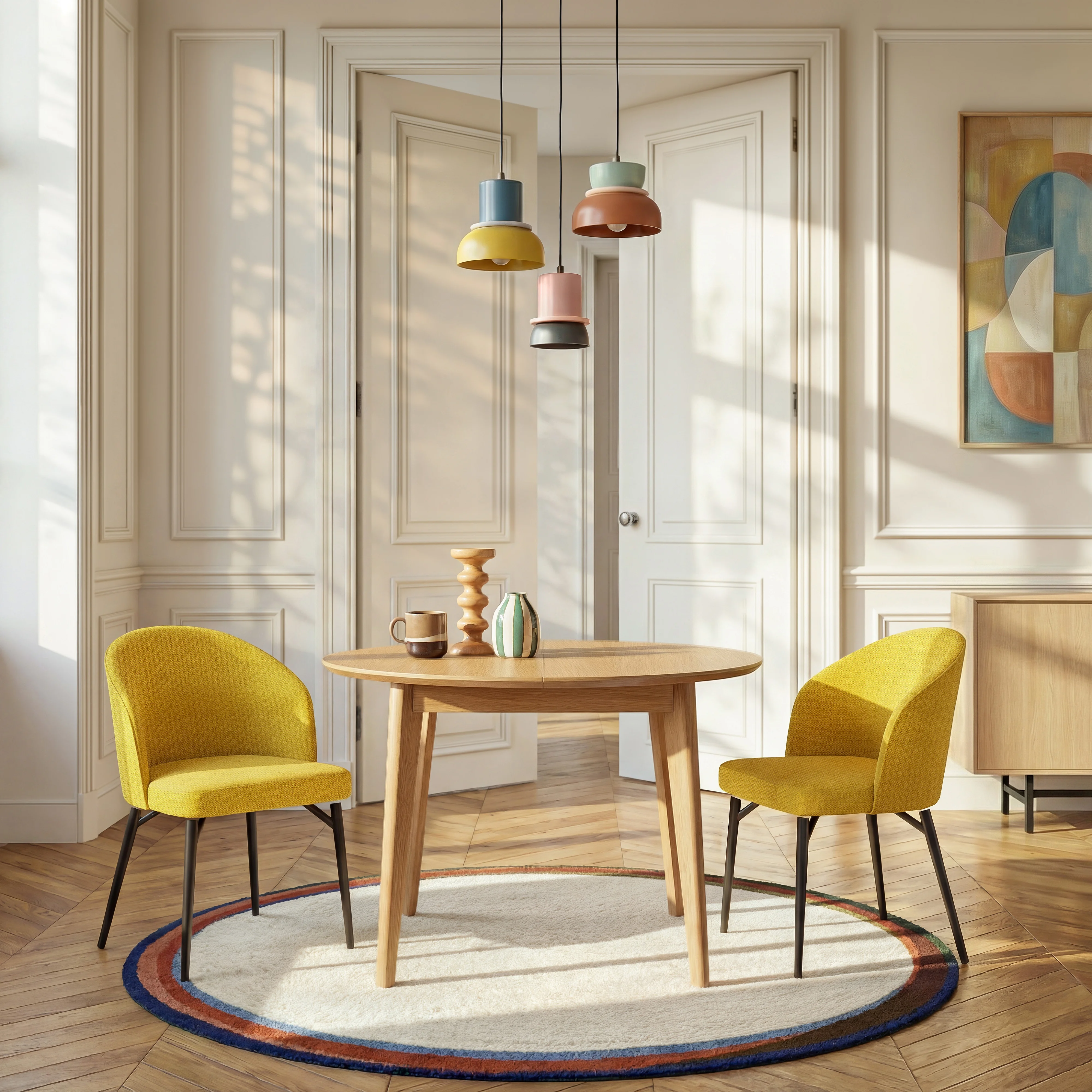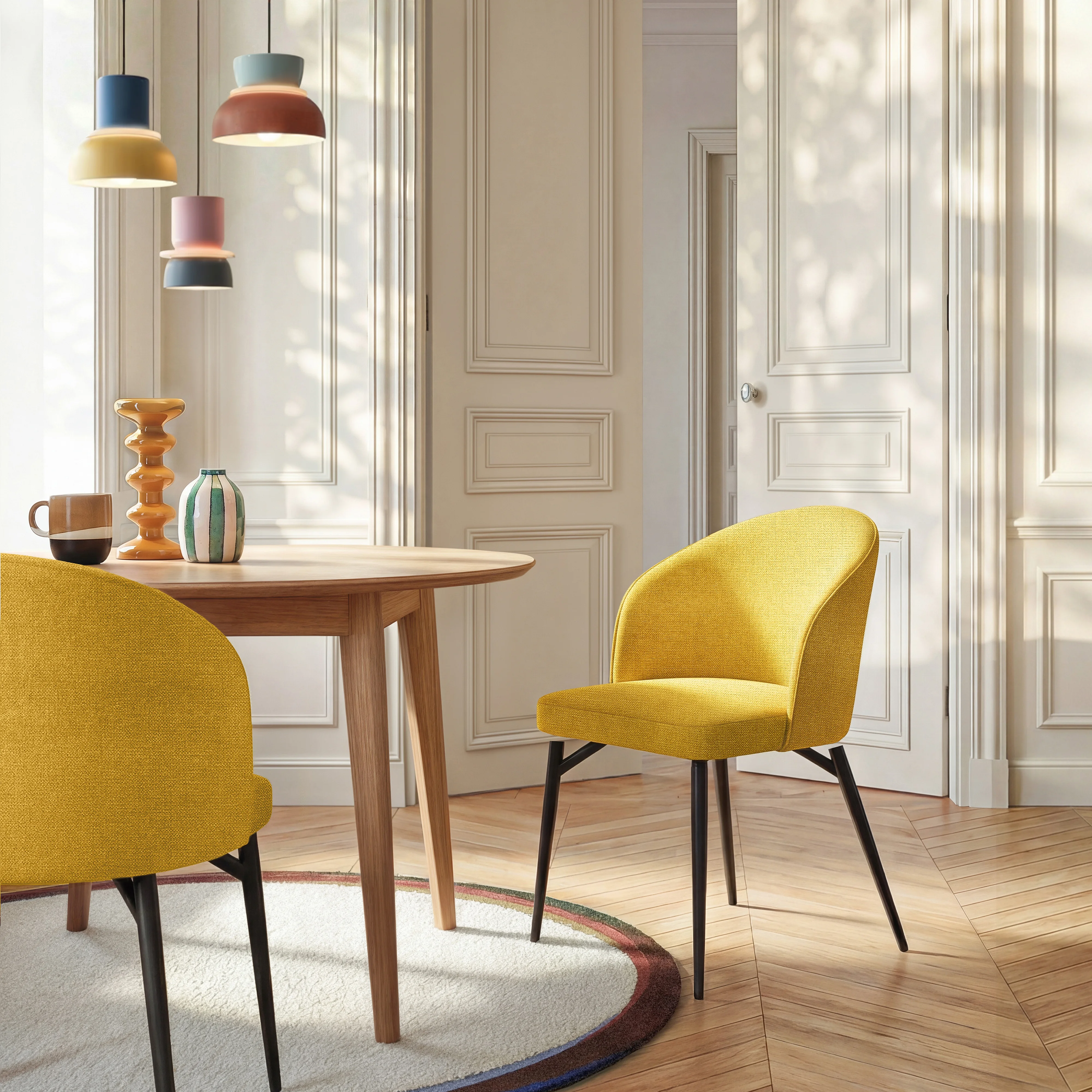 Spinne charmar med sina rundade linjer, sina smala ben och sin genomtänkta komfort. Detta set med 2 stolar kombinerar modern elegans och visuell lätthet för att förhöja stunderna runt bordet.
