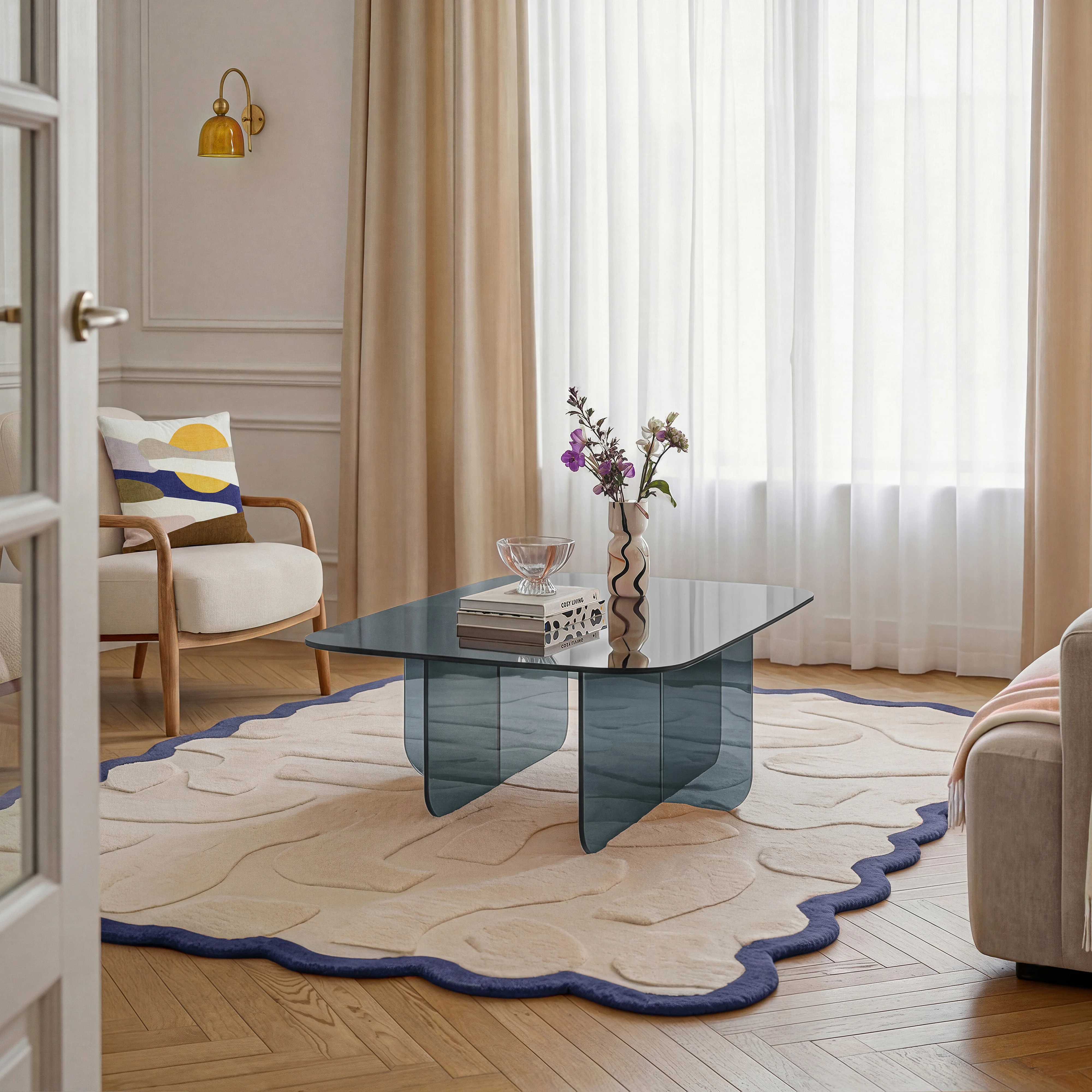 Härdat glas och rundade volymer utgör detta Zélie-soffbord med skulptural design, där nyanserad transparens och arkitektonisk närvaro ingjuter modernitet och karaktär.